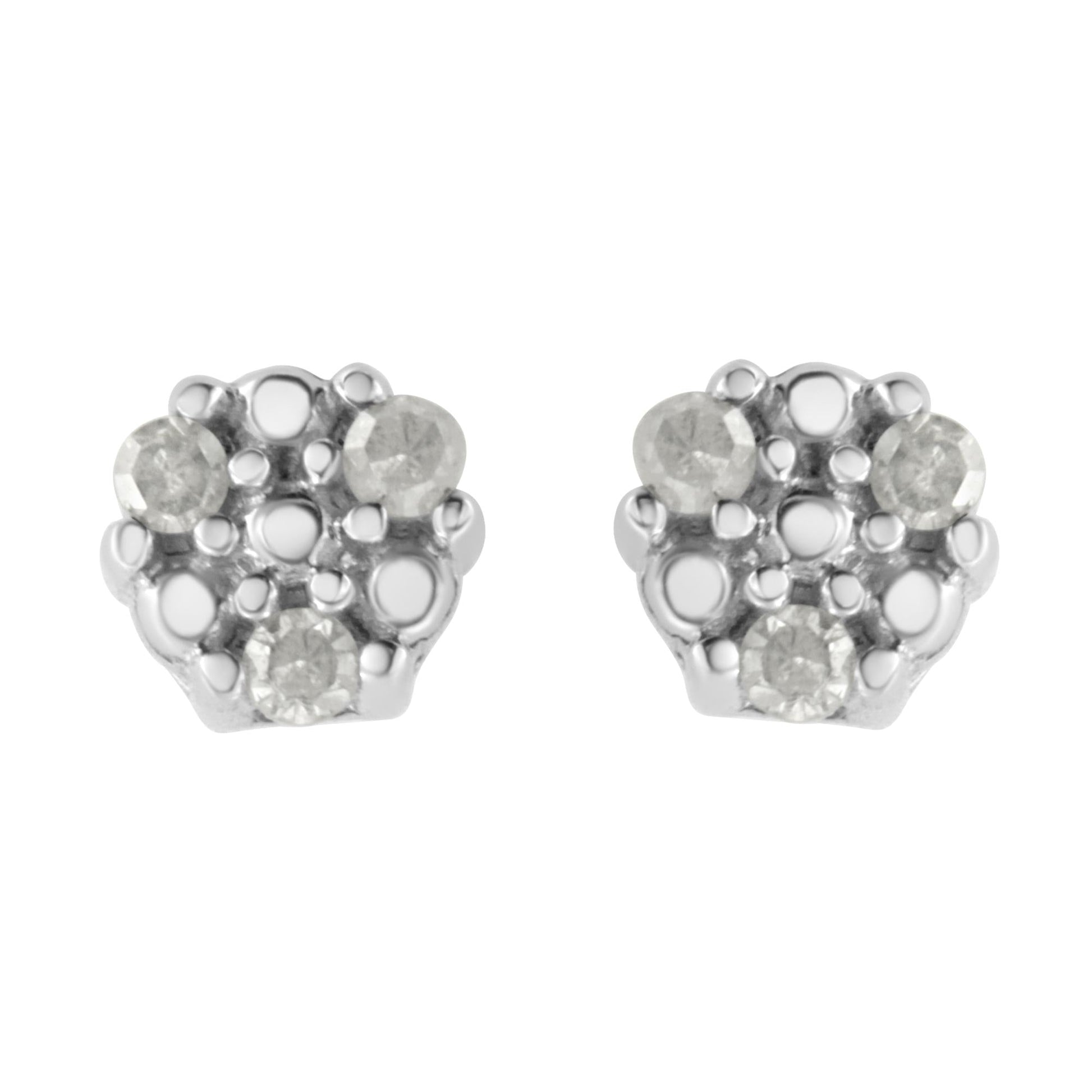 .925 Sterling Silver 1/10 cttw Prong Set Round-Cut Trio Diamond Stud Earrings (I-J Color, I3 Clarity)