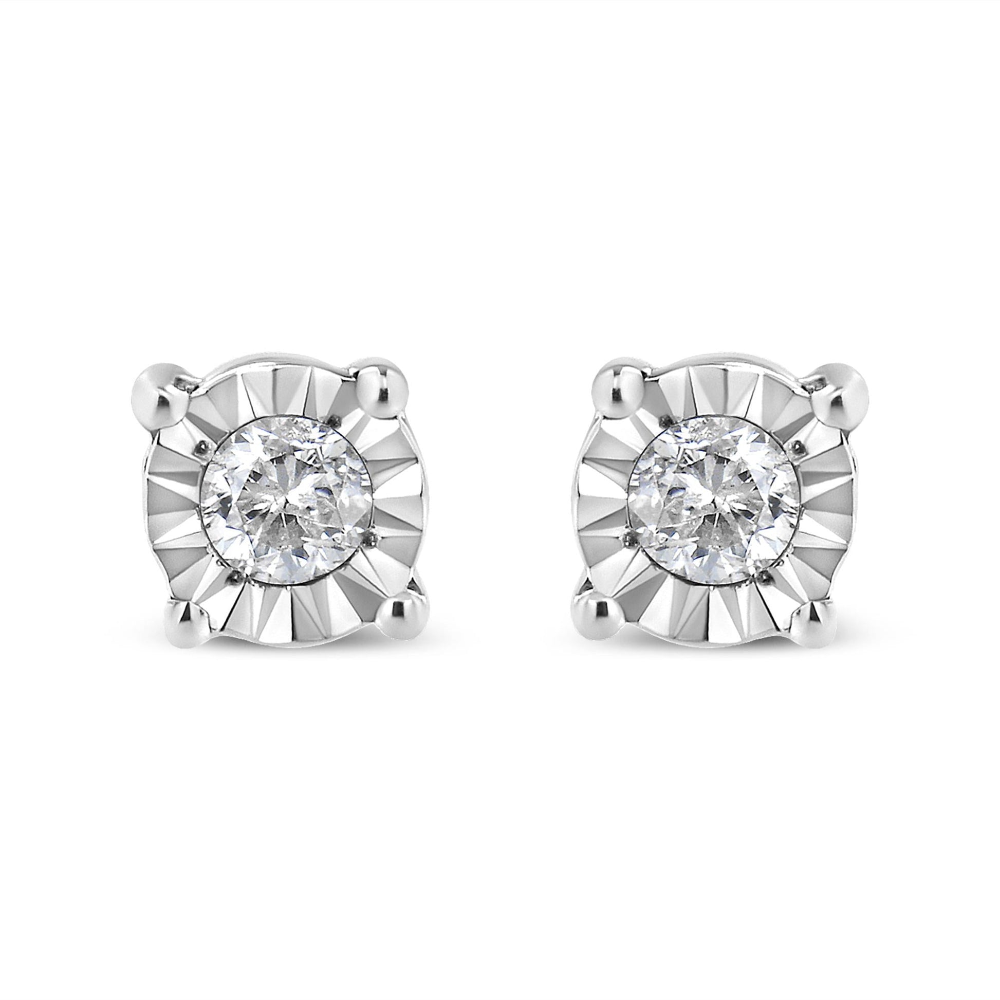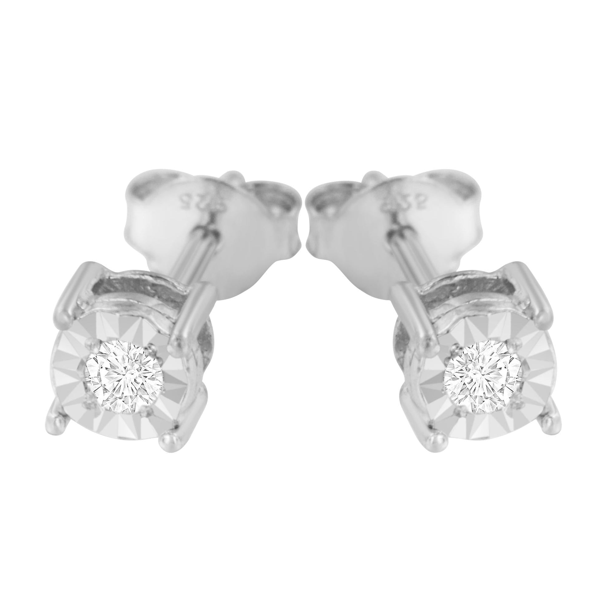 .925 Sterling Silver 1/10 Cttw Round Brilliant-Cut Diamond Miracle-Set Stud Earrings