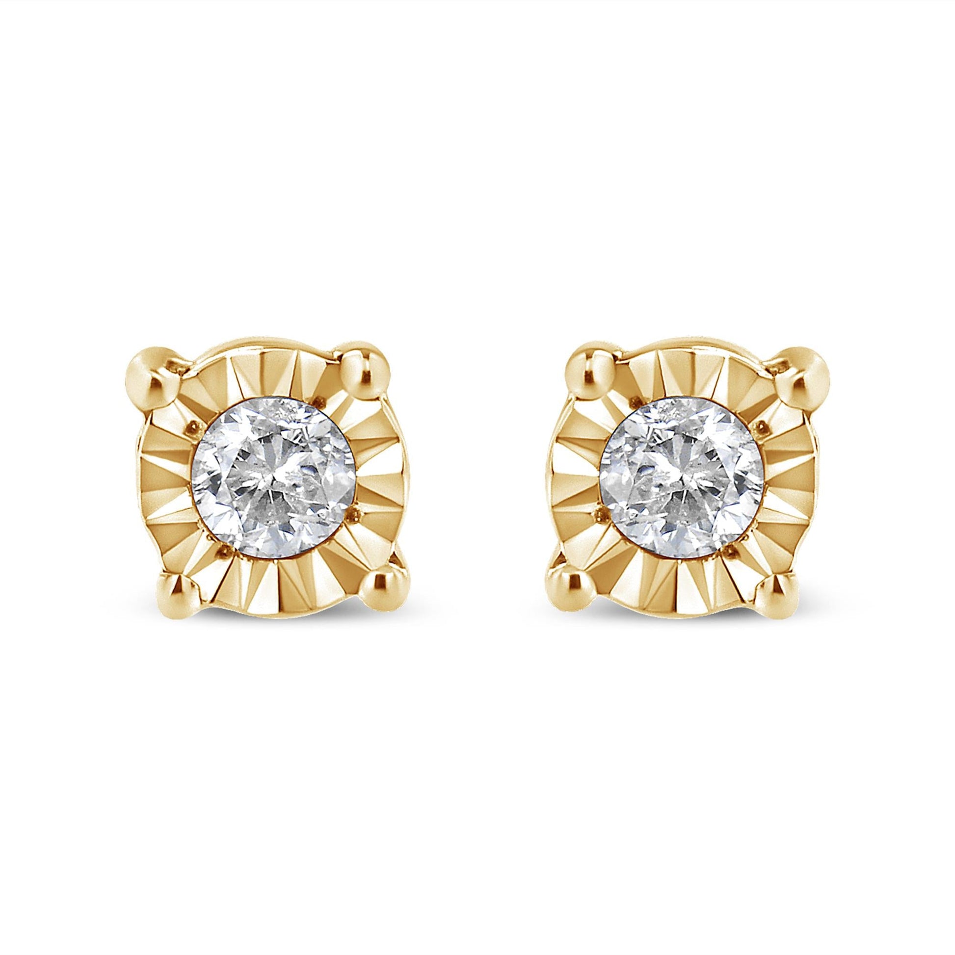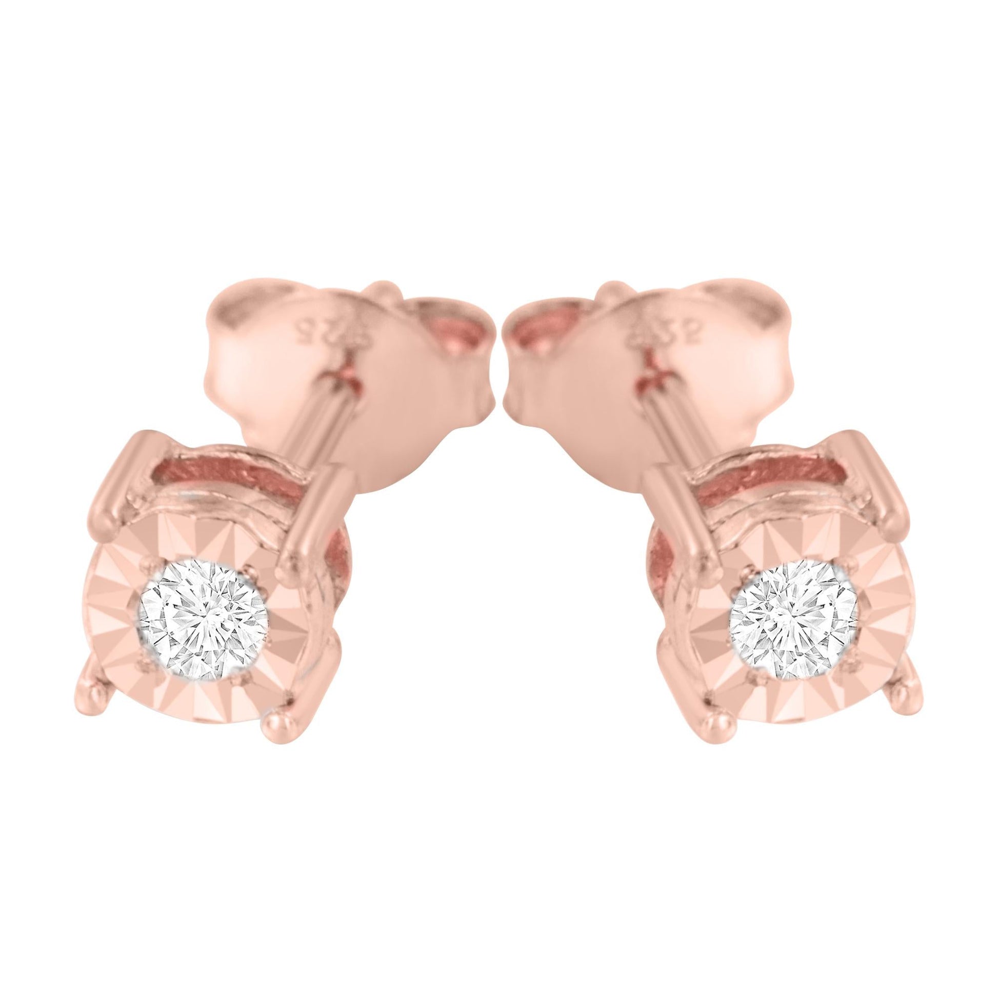 Add a shimmering touch to your wardrobe with these elegant and extravagant diamond earrings. Fashioned in the round shape, the earrings are crafted of your choice of sterling silver plated with white rhodium, or with 10K rose or yellow gold electroplating. Each of the studs captivates with miracle plated round cut diamonds, which gives the illusion of larger diamonds, making them shine like countless stars glitter in the sky.