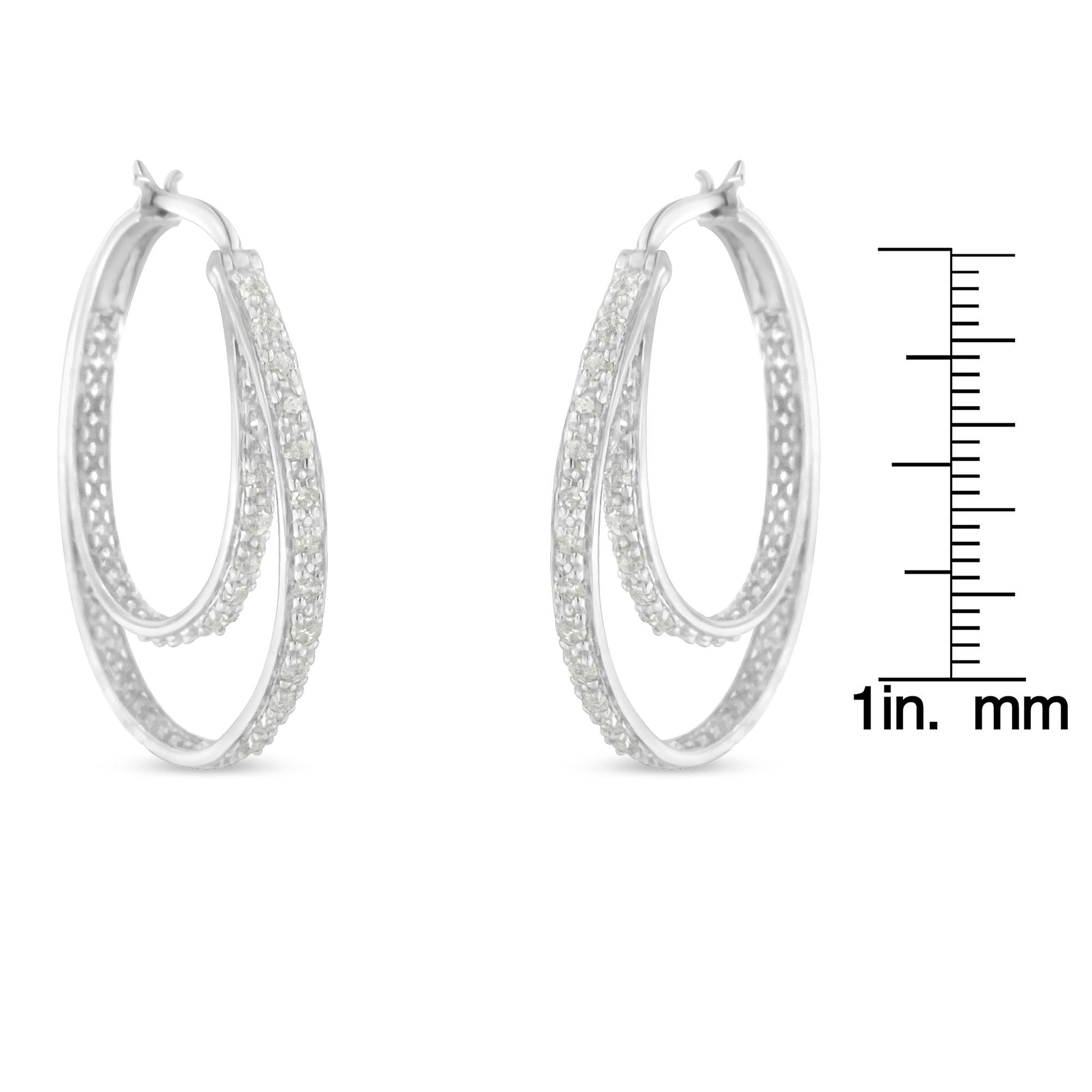 .925 Sterling Silver 1/2 cttw Miracle-Set Diamond Double Hoop with Latchback Earrings (I-J Color, I3 Clarity)
