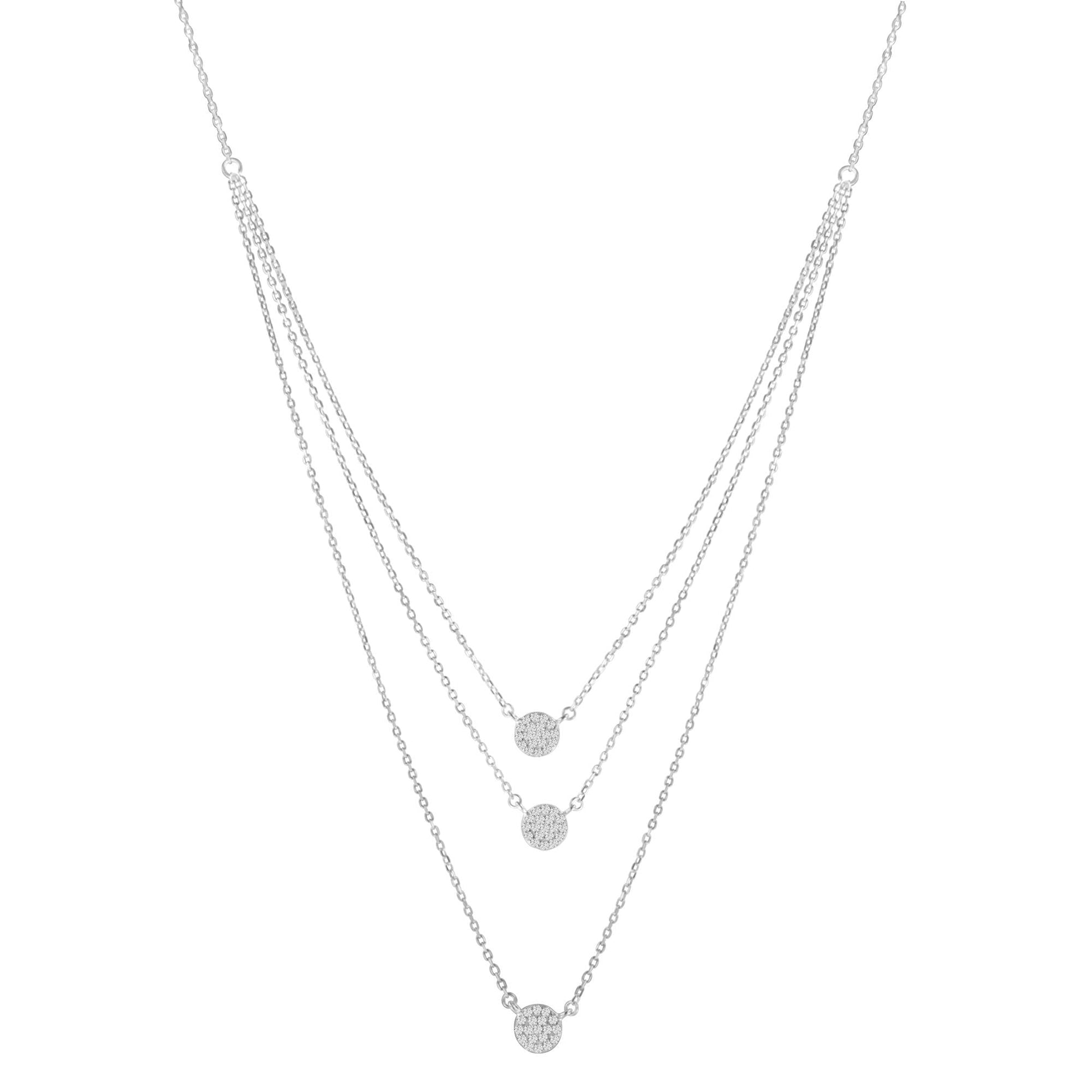 Three chains provide a pre-layered look for your day or evening attire when you slip on the sparkling splendor of this tri pendant necklace. Three circular medallion pendants suspend from modern rope chains, comprised of clusters of round, prong-set diamonds that shimmer in the spotlight. The diamonds total 1/2 cttw with an approximate H-I Color and I2-I3 Clarity. All three chains connect and secure around the neck via a single spring ring clasp. The 18" length of the chain perfectly complements any neckline. Crafted of .925 sterling silver, this necklace is set to stun!