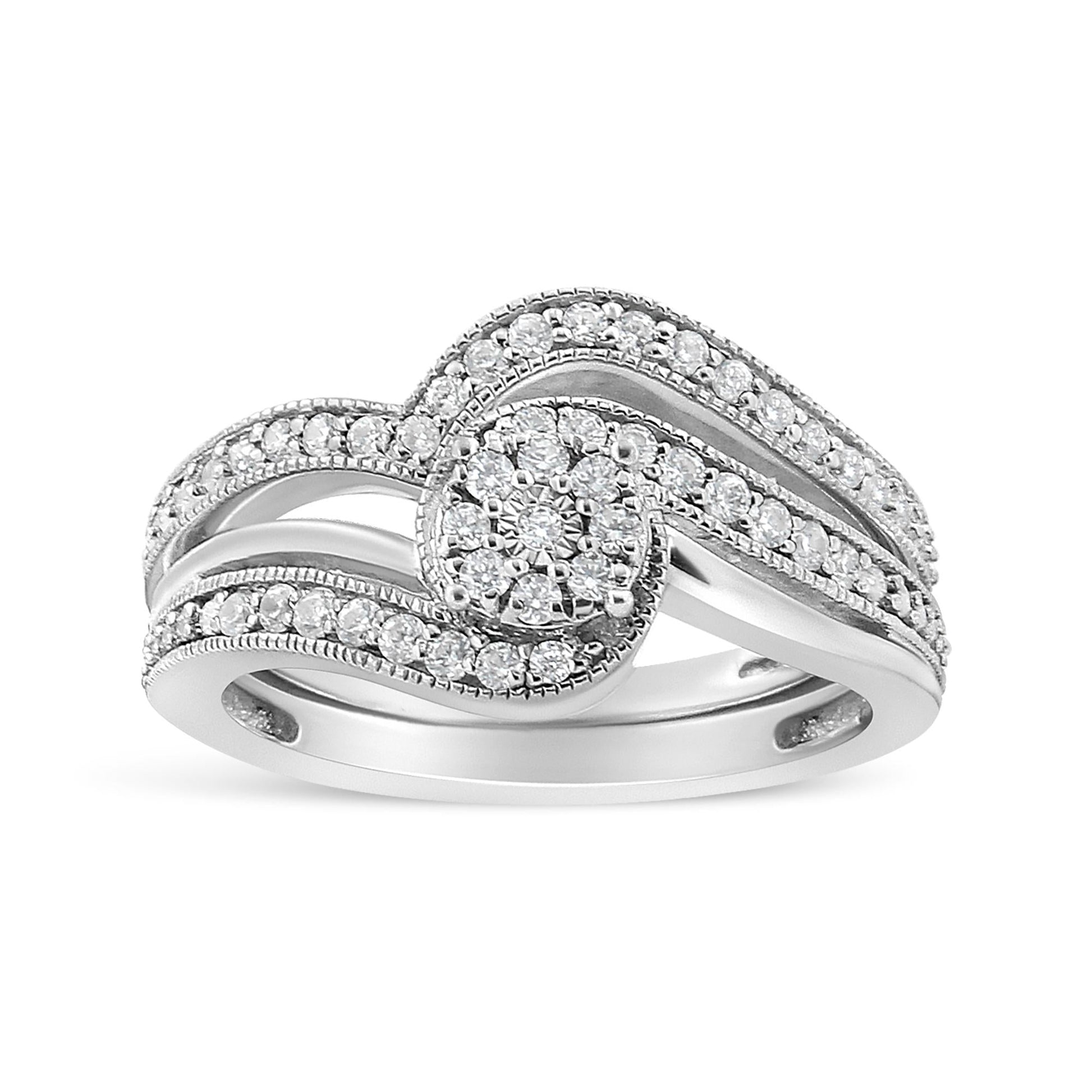 .925 Sterling Silver 1/3ct Cttw Multi-Diamond Bypass Vintage-Style Bridal Set Ring and Band (I-J Color, I3 Clarity)