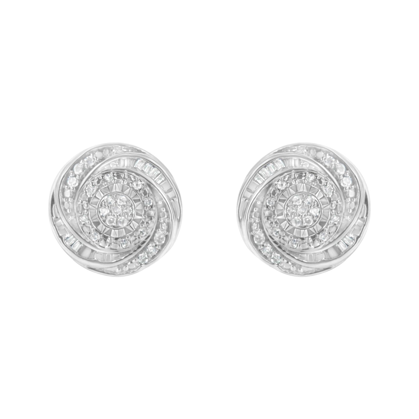 .925 Sterling Silver 1/4 Cttw Baguette and Round Diamond Swirl Love Knot Stud Earrings (I-J Color, I3 Clarity)