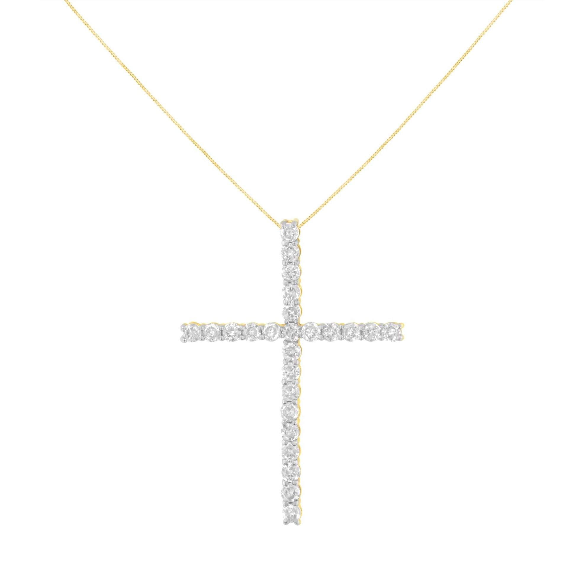 This beautiful piece of jewelry is not only a symbol of devotion and faith but also a true work of art. This gorgeous .925 sterling silver pendant necklace features round, brilliant cut diamonds in a cross design. This diamond cross pendant comes with a matching box chain necklace with a spring ring clasp. The contemporary yet classic 18†box chain complements any neckline beautifully. This authentic design is crafted of real 92.5% sterling silver that has been electro-coated with genuine rhodium (a platinum-family metal), ensuring it will keep a tarnish-free shine for years to come. Whether worn for daytime glamour or evening sparkle, this necklace is gorgeously versatile. It's a classic and feminine piece she'll want to show off every day. A brilliant beacon of faith and hope, our stunning Sterling Silver Diamond Cross Pendant Necklace has been designed to be a dazzling reminder of optimism and confidence to anyone who wears it.