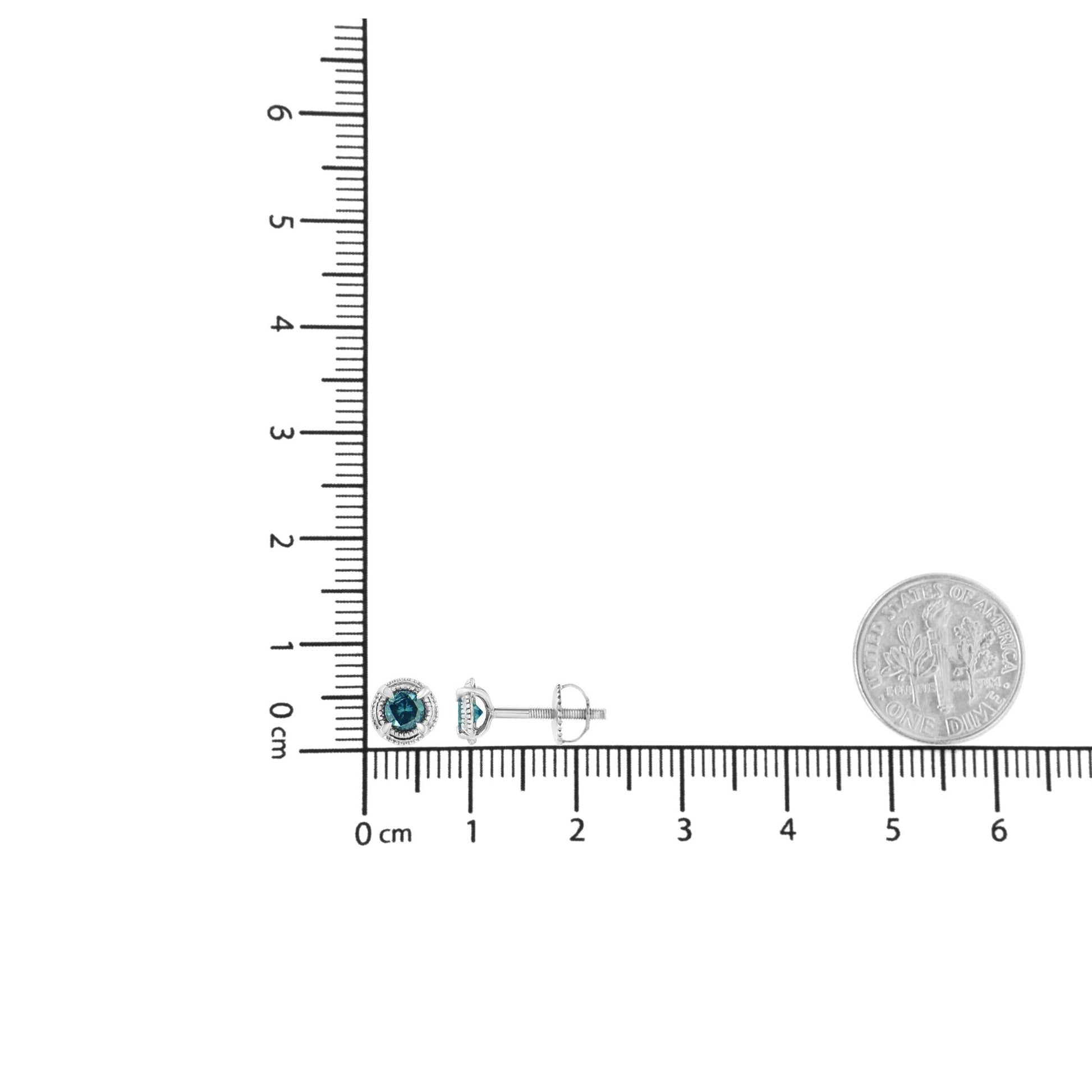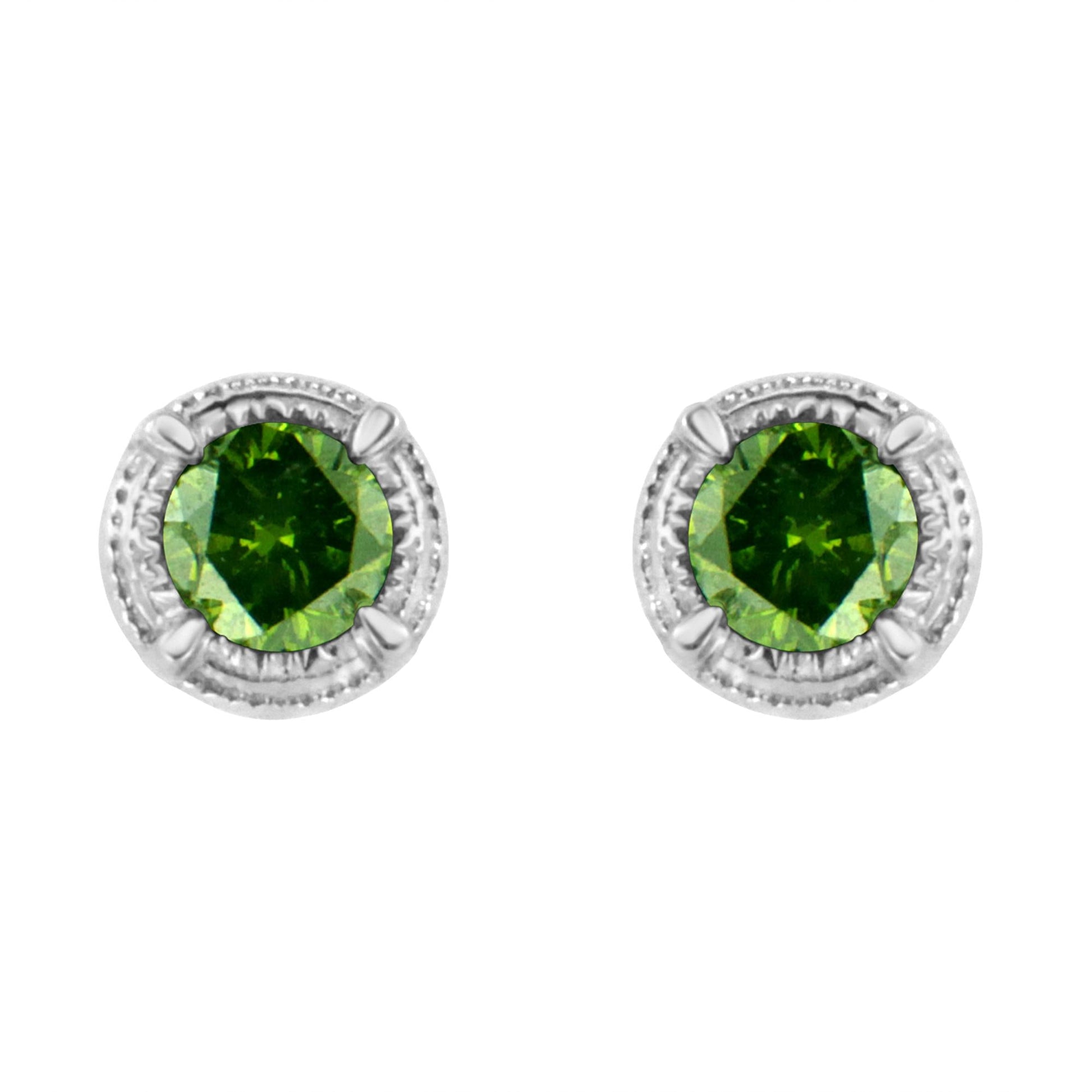 .925 Sterling Silver Treated Colored Diamond Modern 4-Prong Solitaire Milgrain Stud Earrings