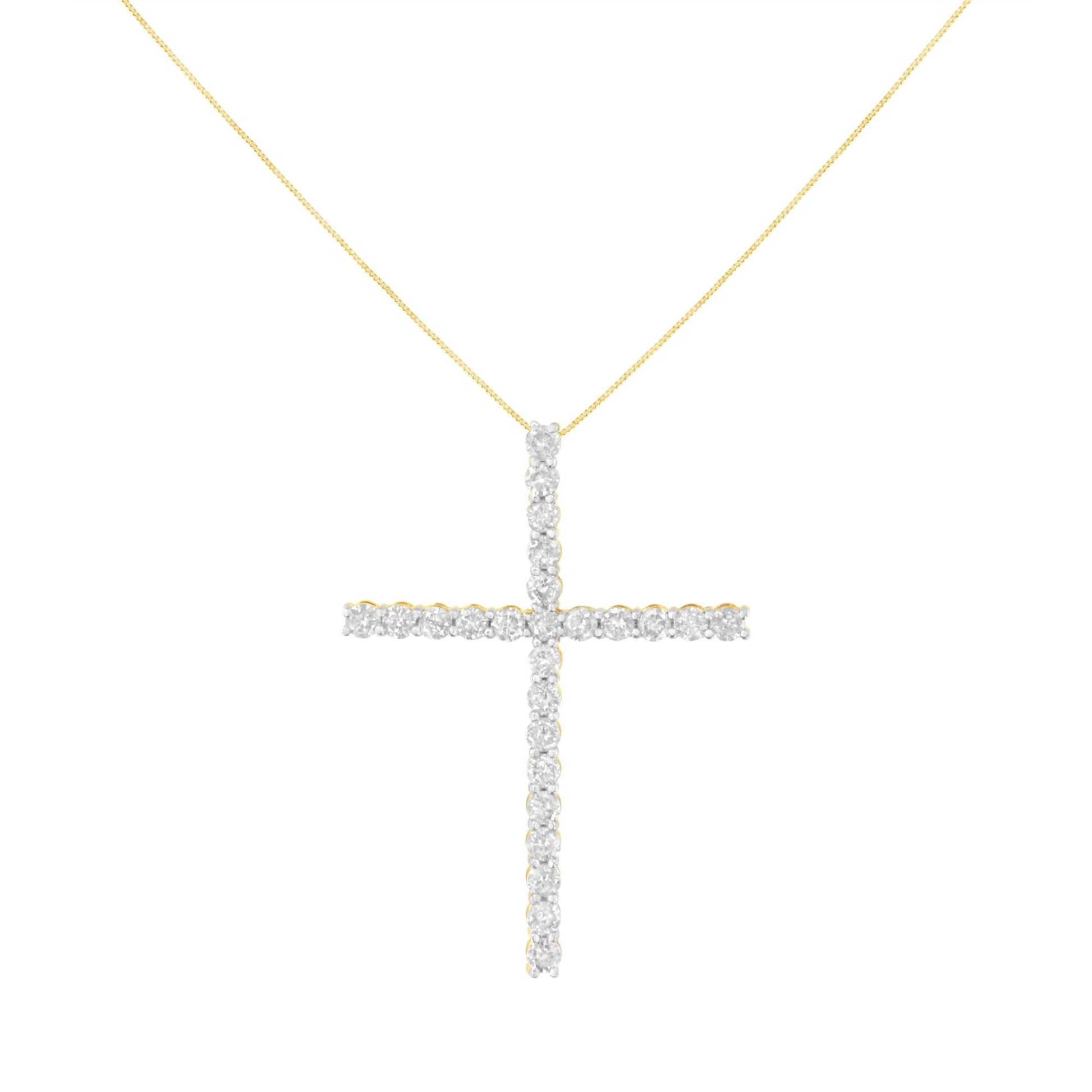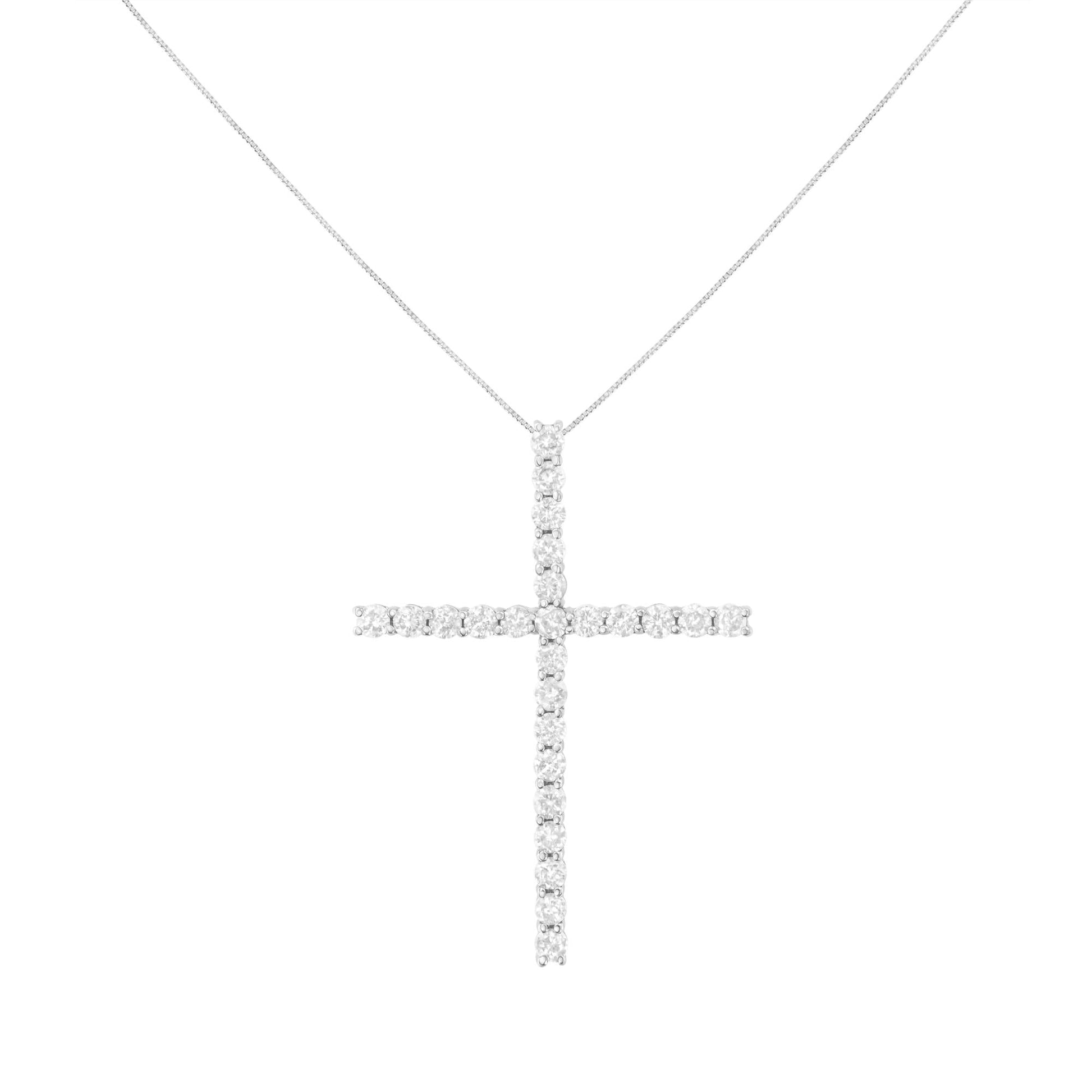 .925 Sterling Silver 3.0 Cttw Round Shape Diamond 1-1/2" Cross Pendant with Box Chain Necklace (J-K Color, I2-I3 Clarity) - 18"
