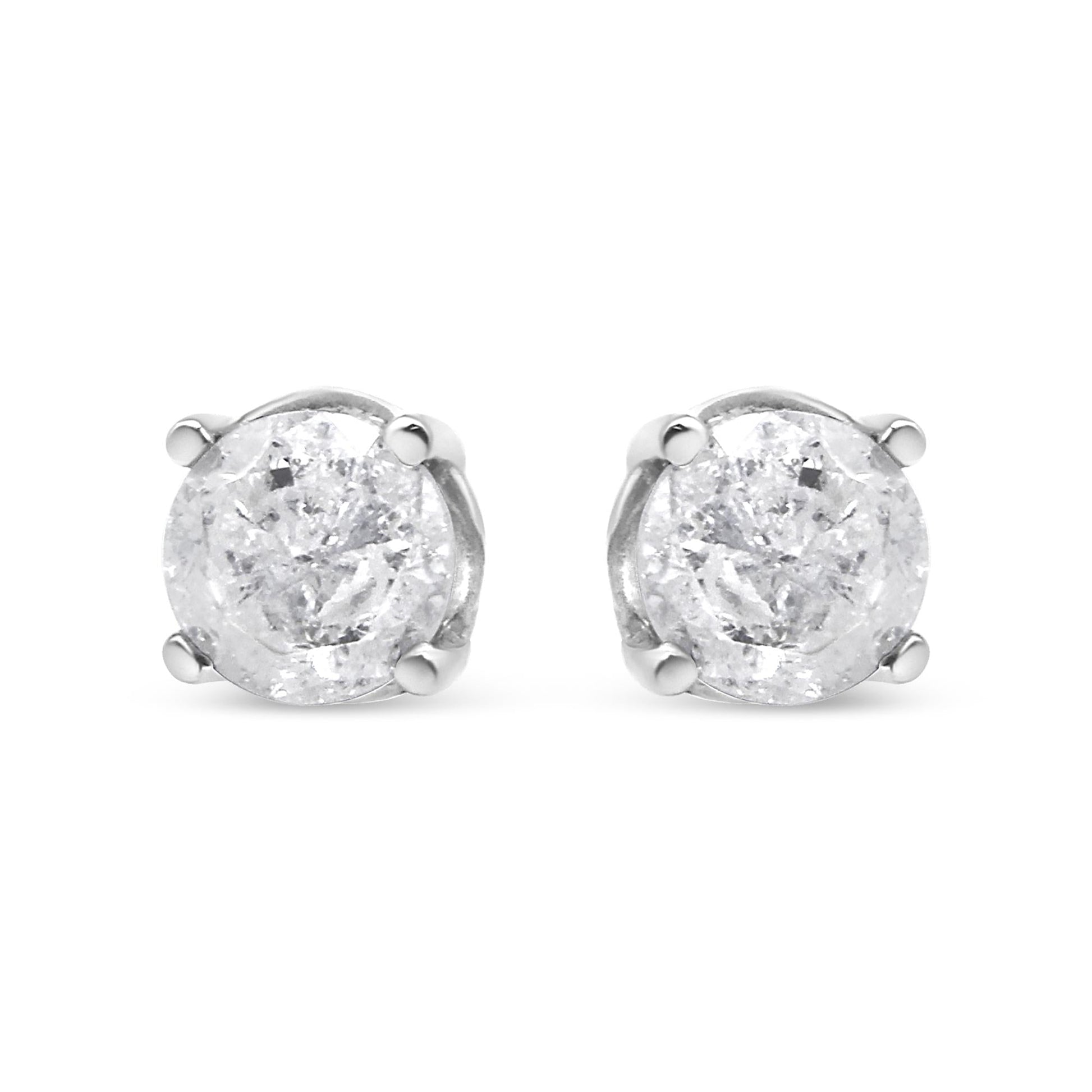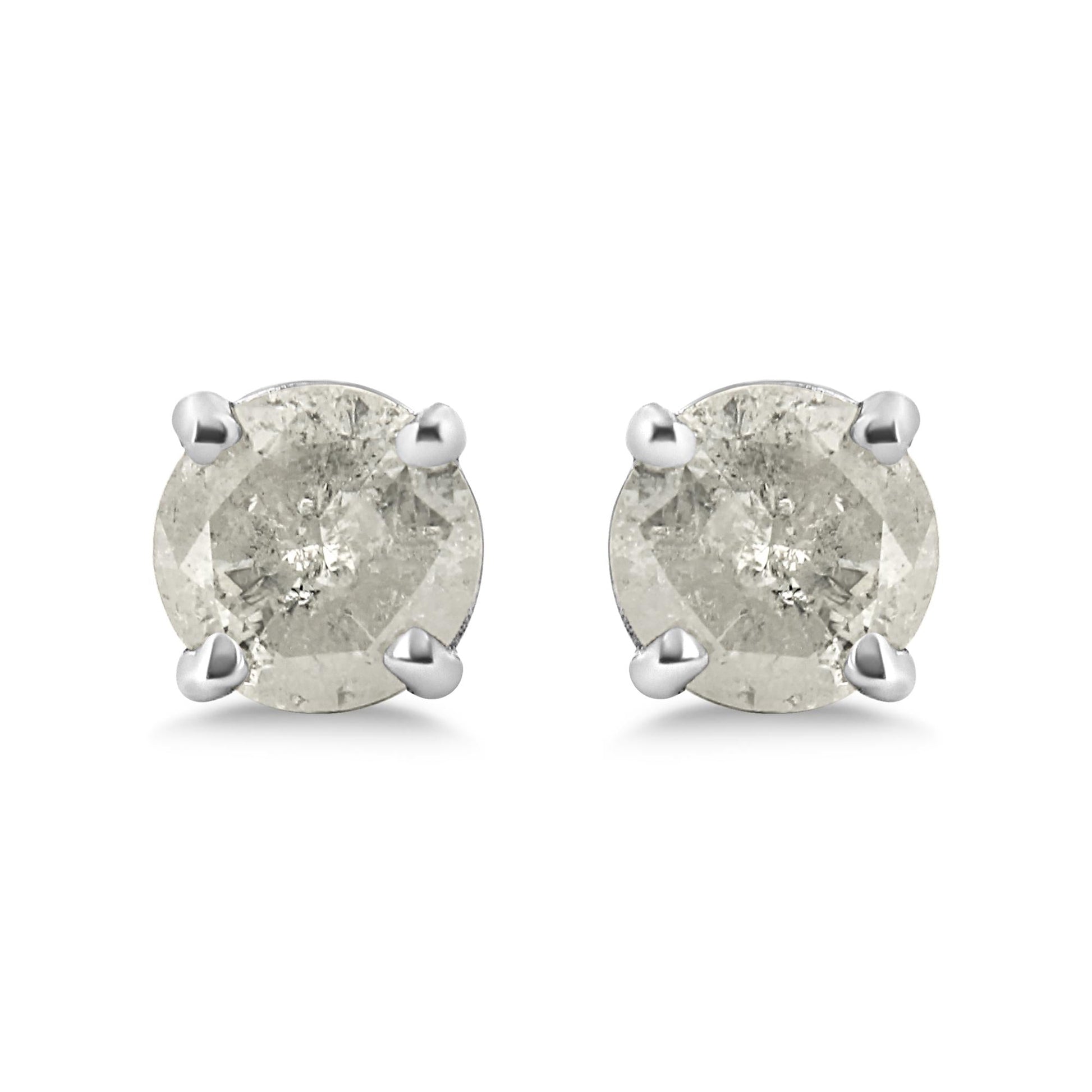 A classic design for a classic woman, these silver studs are the perfect piece for the modern, everyday woman. Crafted in genuine .925 sterling silver, and plated with rhodium (a platinum-family metal) for a lifetime of tarnish-free wear, these earrings are embellished with natural, round-cut diamonds in a 4-prong setting. These studs are set with "Salt and Pepper" diamonds. A salt and pepper diamond is a diamond that has a unique assortment of inclusions, which typically appear black and white. This means that no two salt and pepper diamonds are alike. Some are dark, others are bright, and some look almost gray. With a total carat weight of 3/4 cttw, these studs are the perfect accessory and will add a touch of shine to any look of yours.