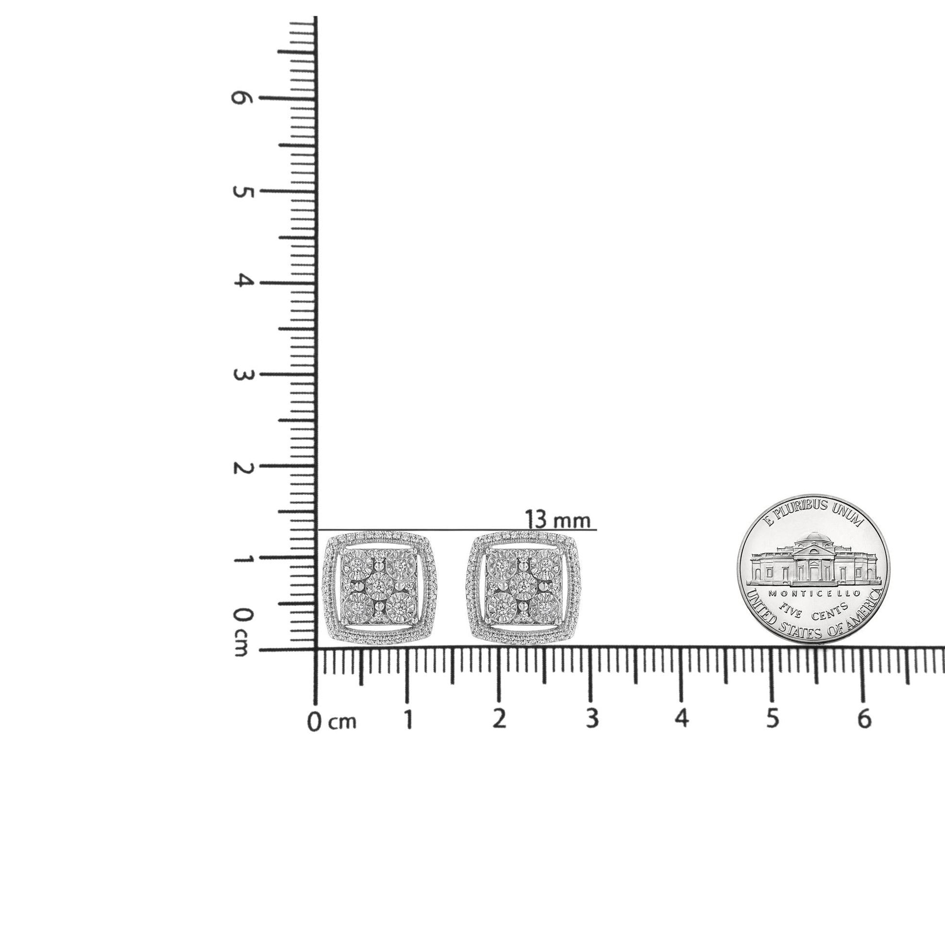 .925 Sterling Silver 3/8 Cttw Miracle Set Round Diamond Double Halo Cluster Earrings (I-J Color, I2-I3 Clarity)