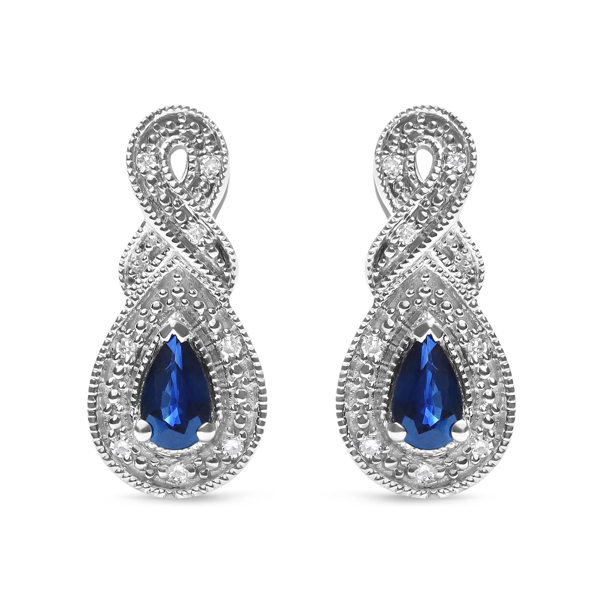 .925 Sterling Silver 4.5 x 3mm Pear Sapphire Gemstone and Diamond Accent Infinity Drop Stud Earrings (H-I Color, SI1-SI2 Clarity)