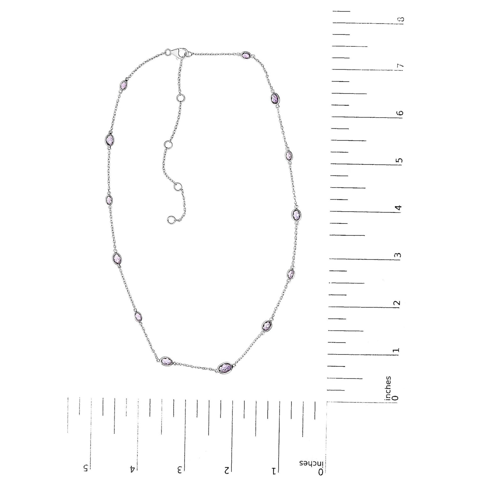 .925 Sterling Silver Checkerboard Cut Purple Amethyst Bezel Station Necklace - 22" Inches