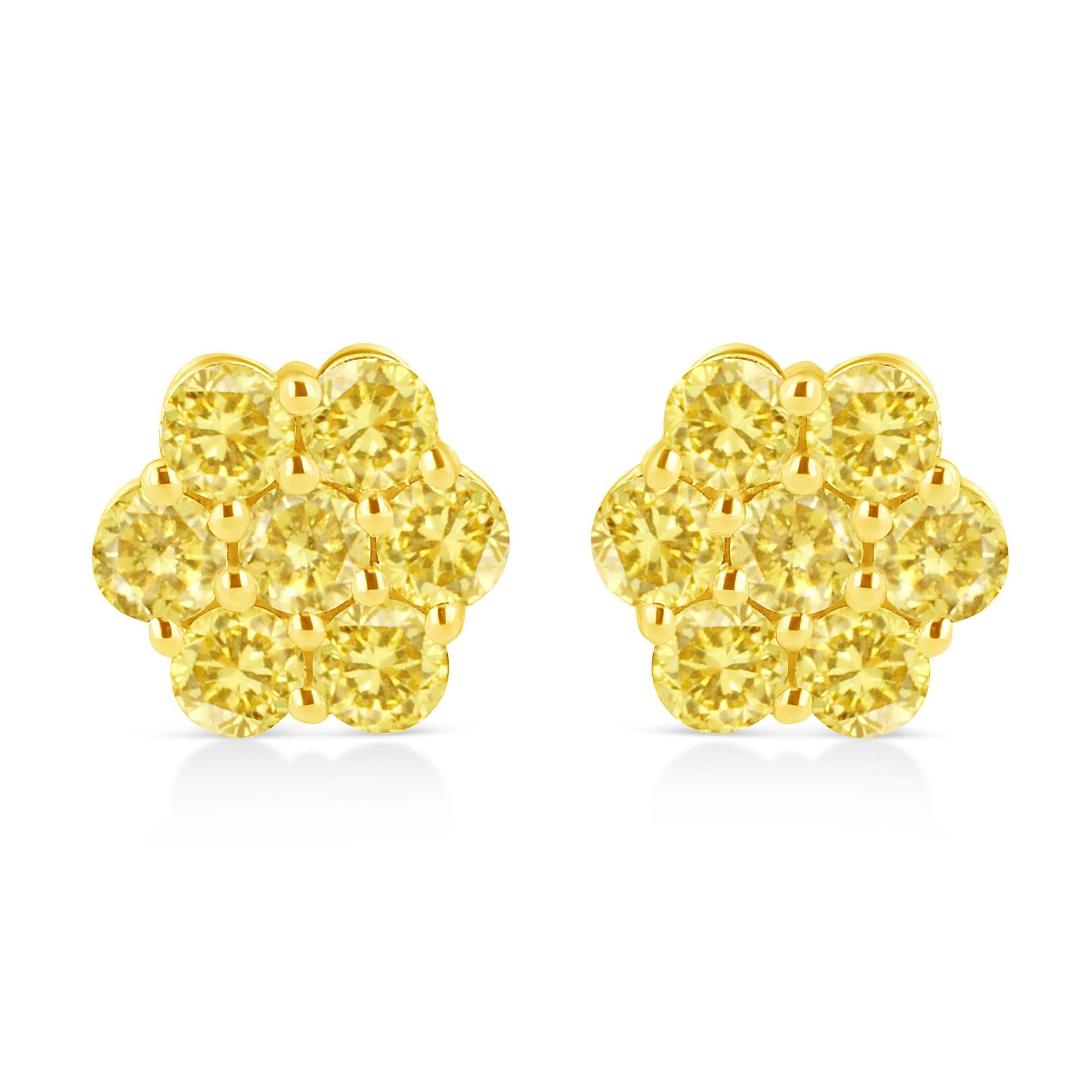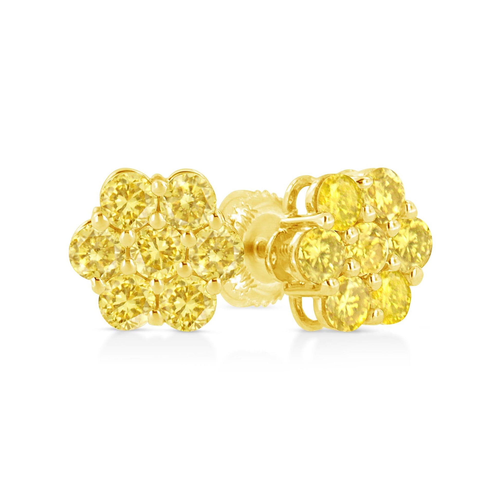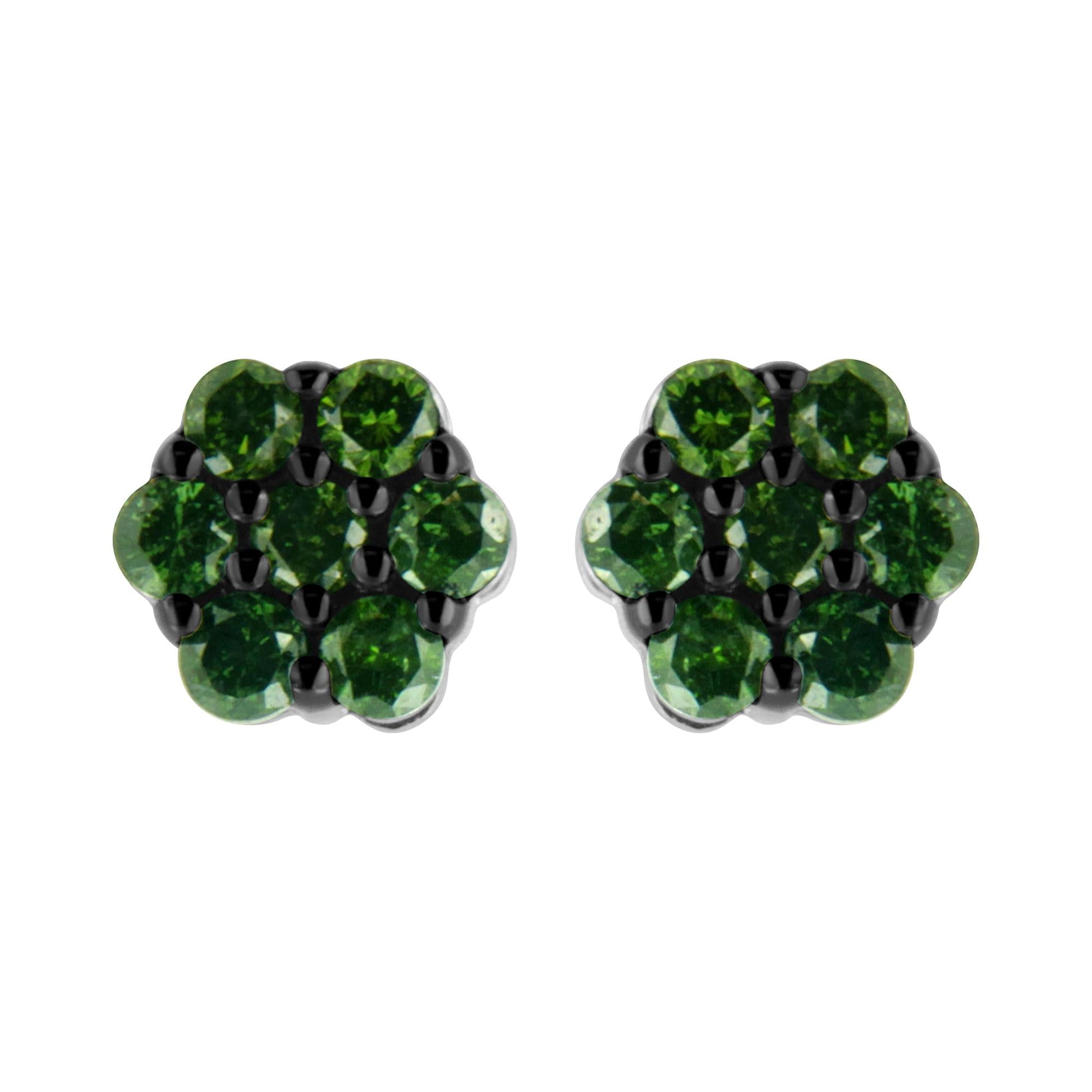 .925 Sterling Silver Prong Set Round-Cut Treated Colored Diamond Floral Cluster Stud Earring - Choice of Diamond Colors and Total Weights