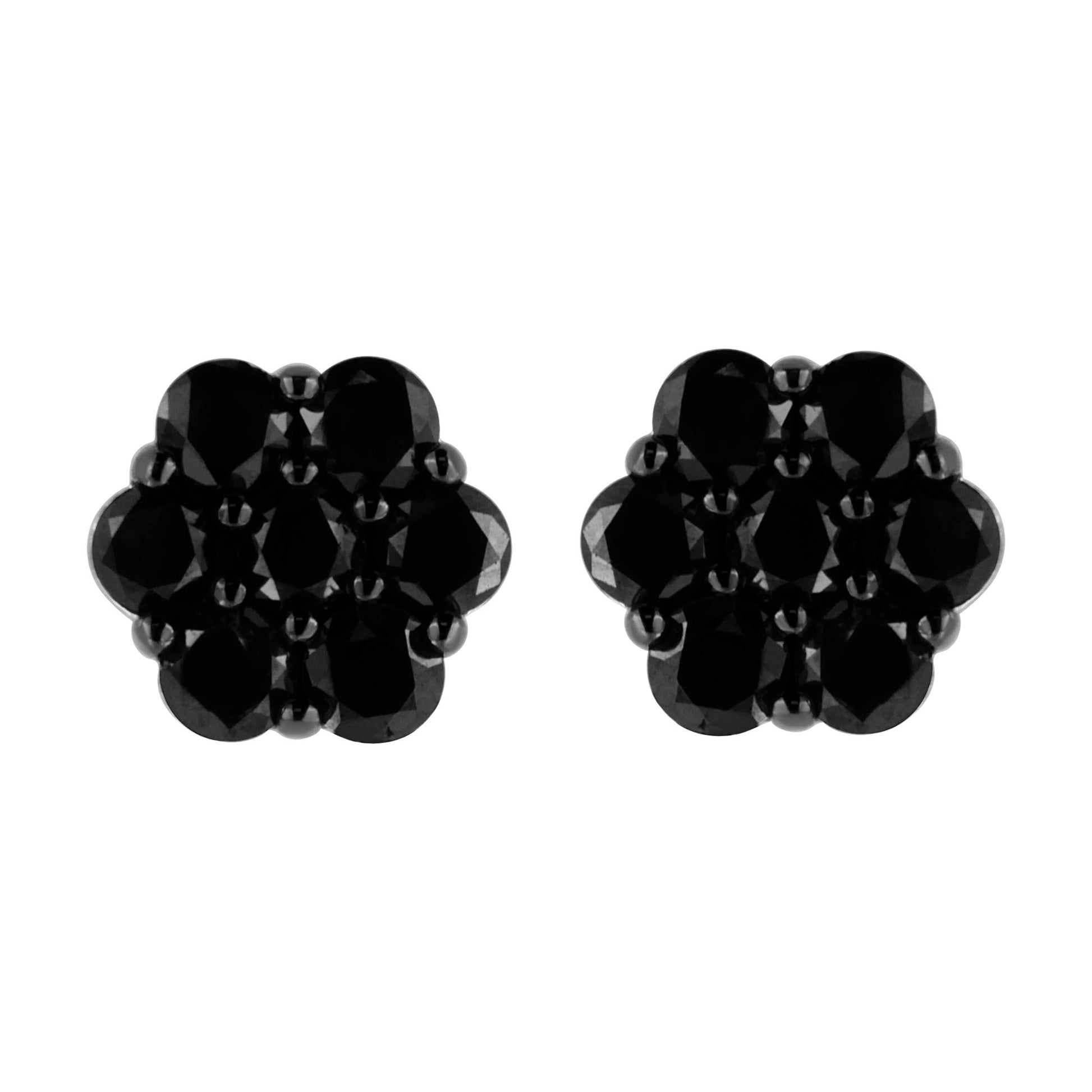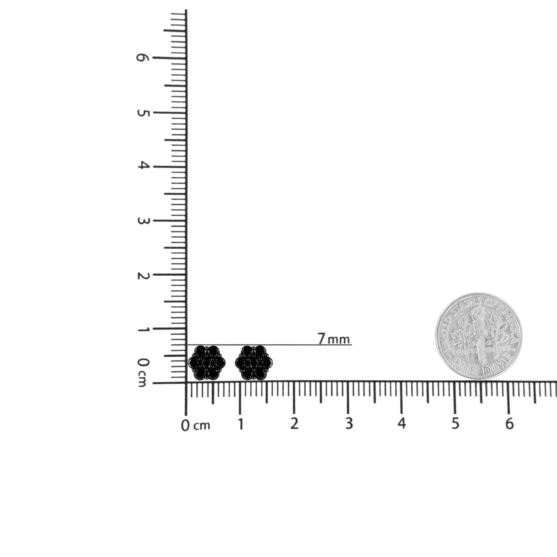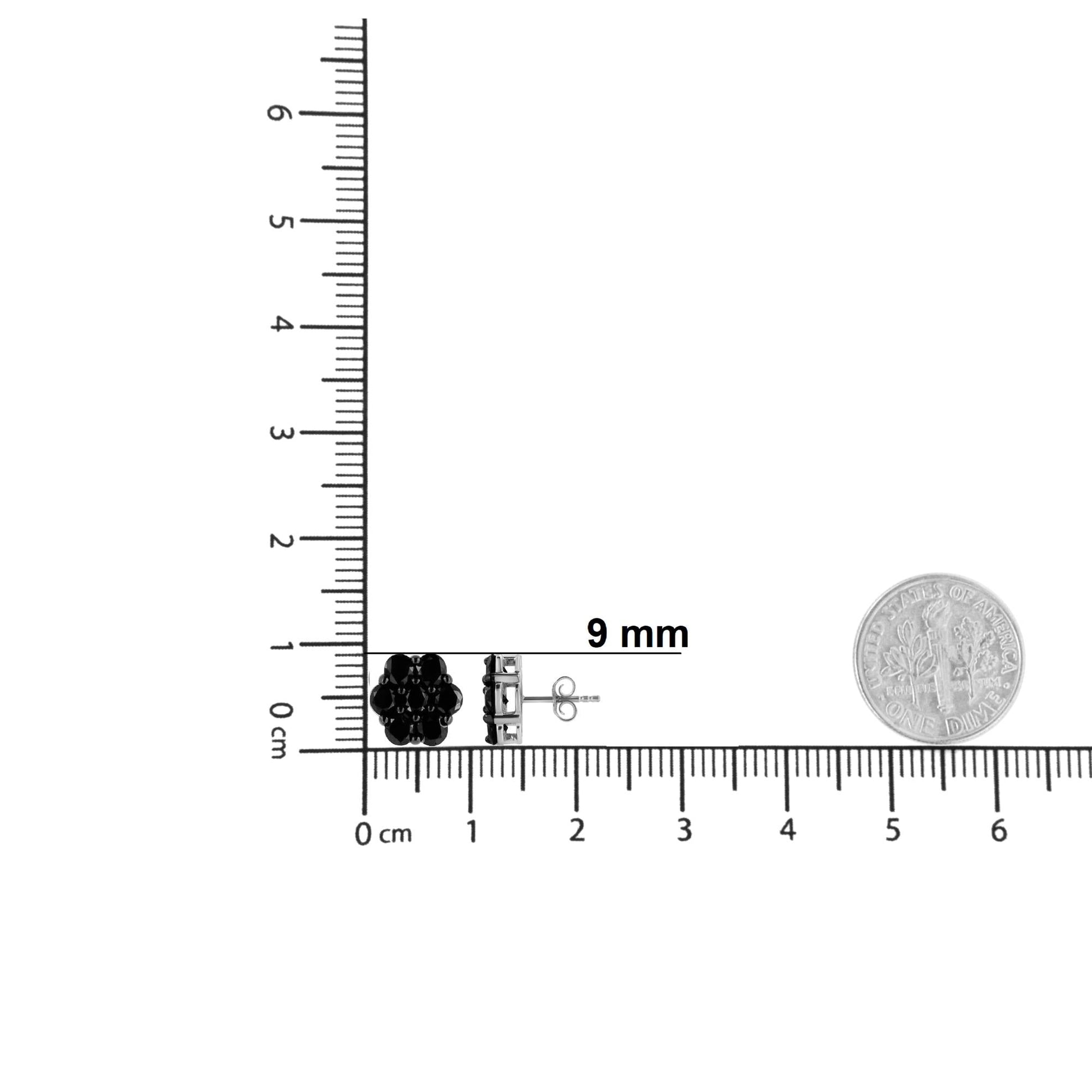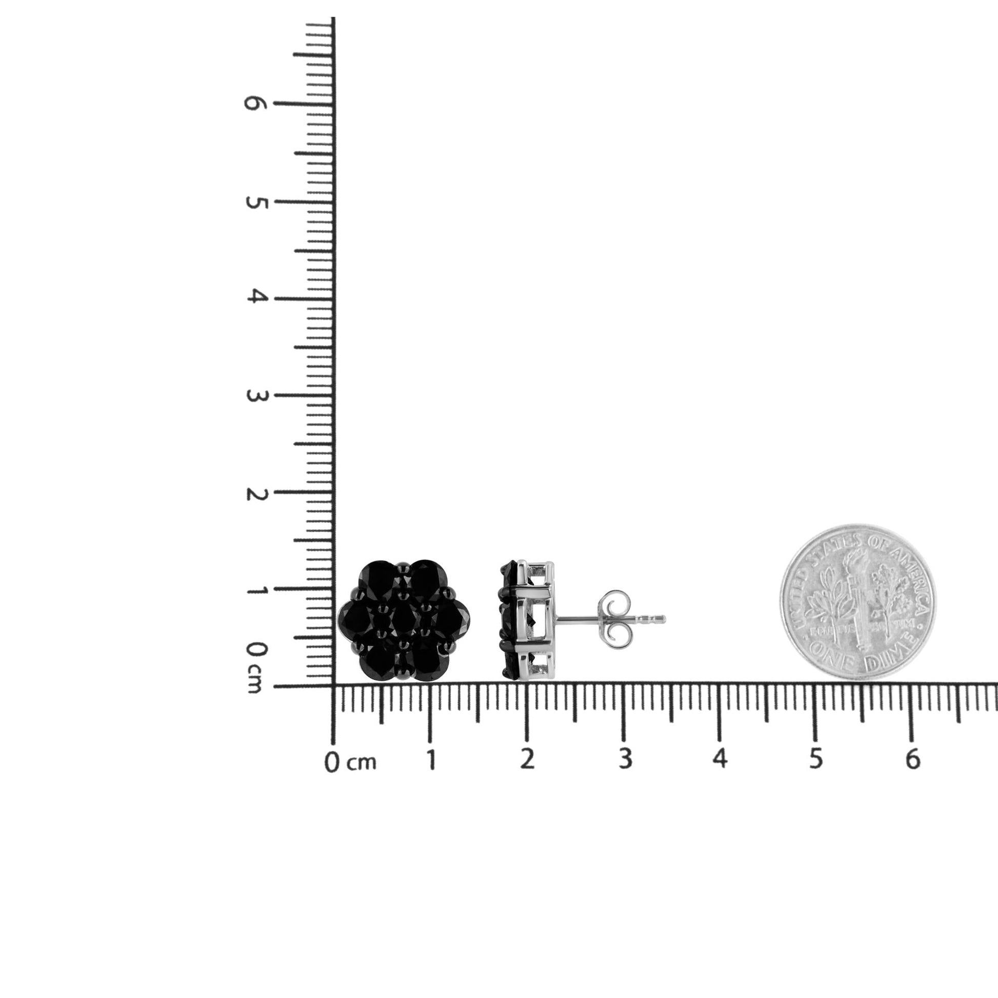 You will fall in love with these classic cluster stud earrings. A must have for any serious jewelry collection, these .925 sterling earrings boast a 0.25 carat total weight of treated black diamonds with seven stones each. The earrings are floral clusters with seven round, brilliant cut diamonds in shared prong settings. The earrings have stacked open galleries. The stud style earrings have pushback closures. These classic, elegant floral cluster stud earrings make a great gift for any special occasion! Whether worn for daytime glamour or evening sparkle, these earrings are gorgeously versatile. Give her a gift that will perfectly complement her favorite ensemble.