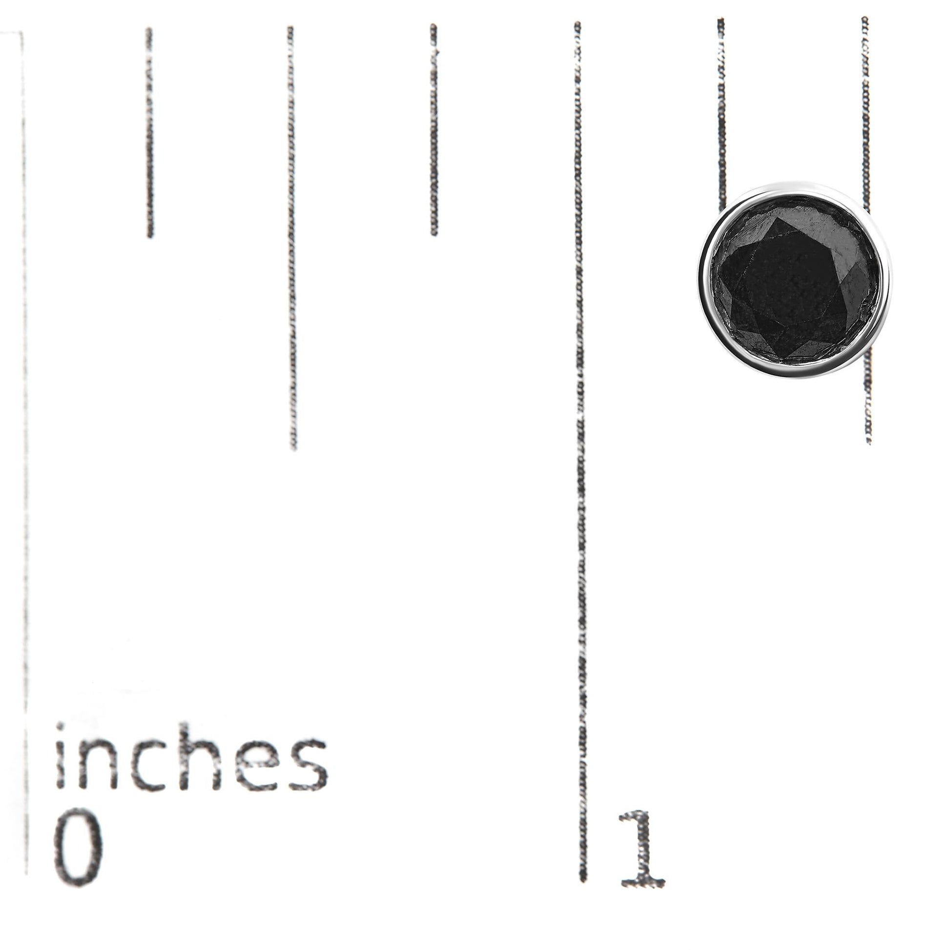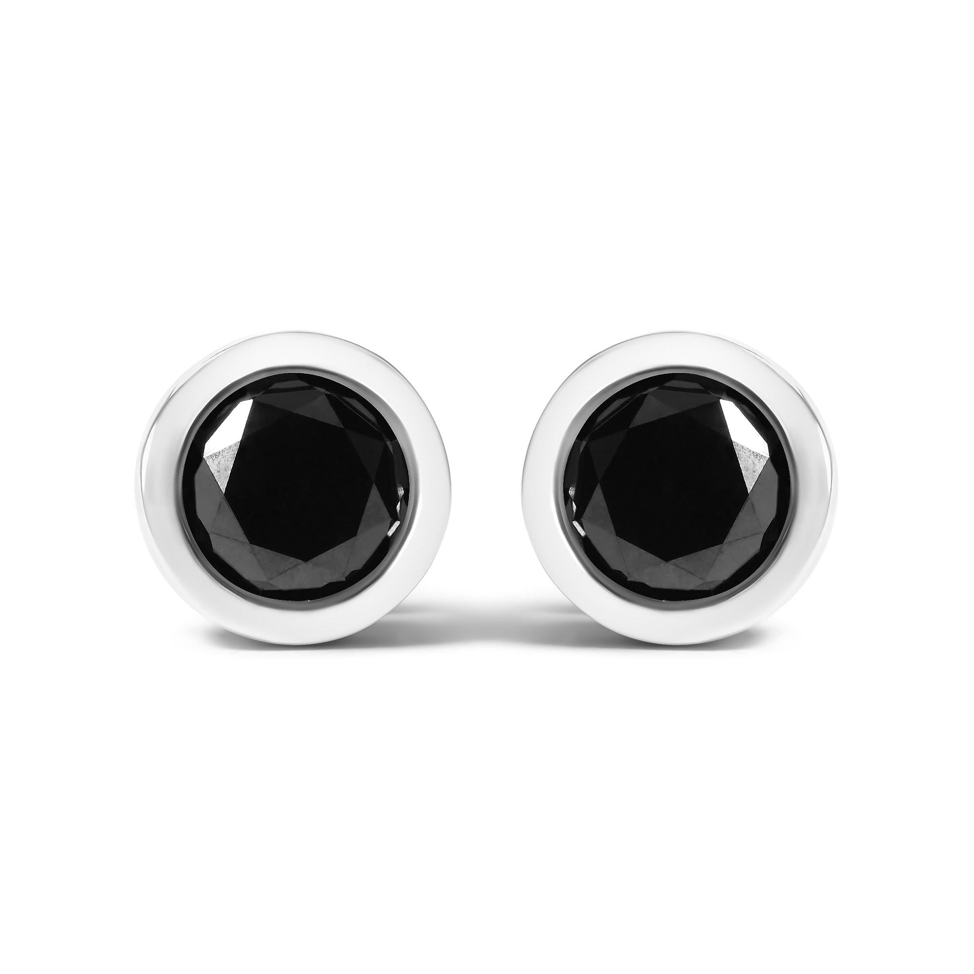 .925 Sterling Silver Round Brilliant-Cut Black Diamond Bezel-Set Stud Earrings with Screw Backs (Fancy Color-Enhanced, I2-I3 Clarity)