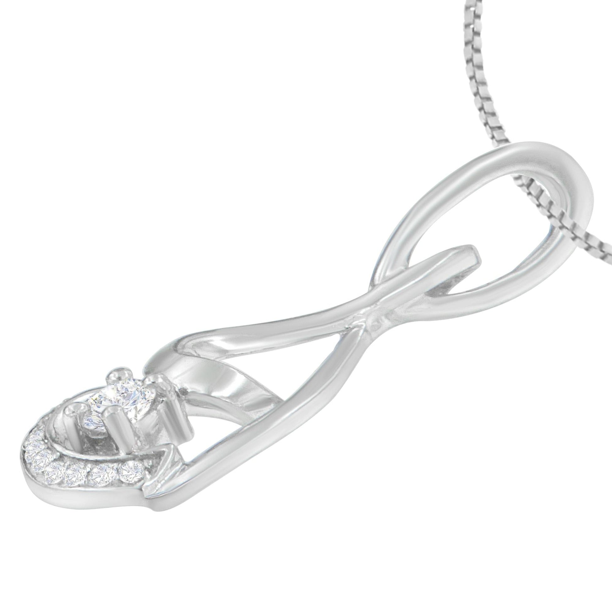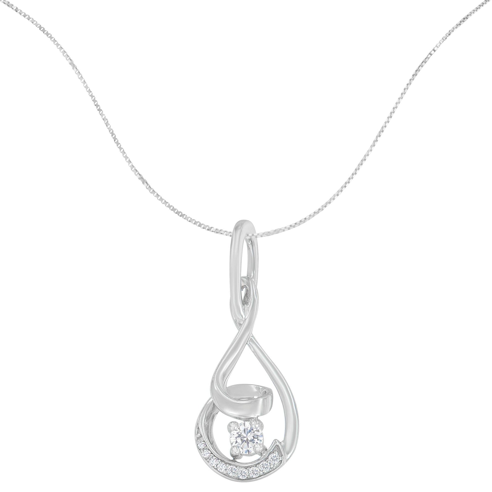 Espira 10K White Gold 1/4 cttw Round Cut Diamond Spiral Link Pendant Necklace (H-I, I1-I2)