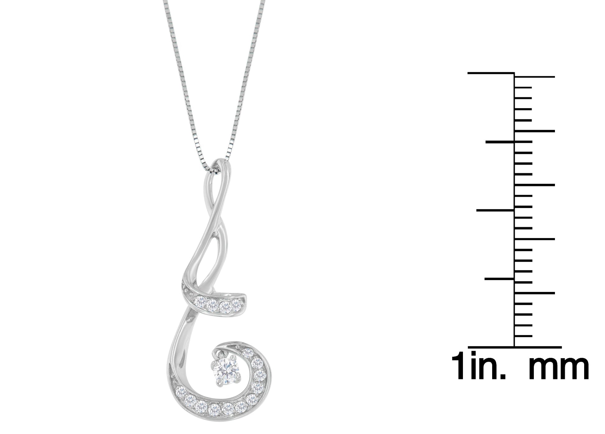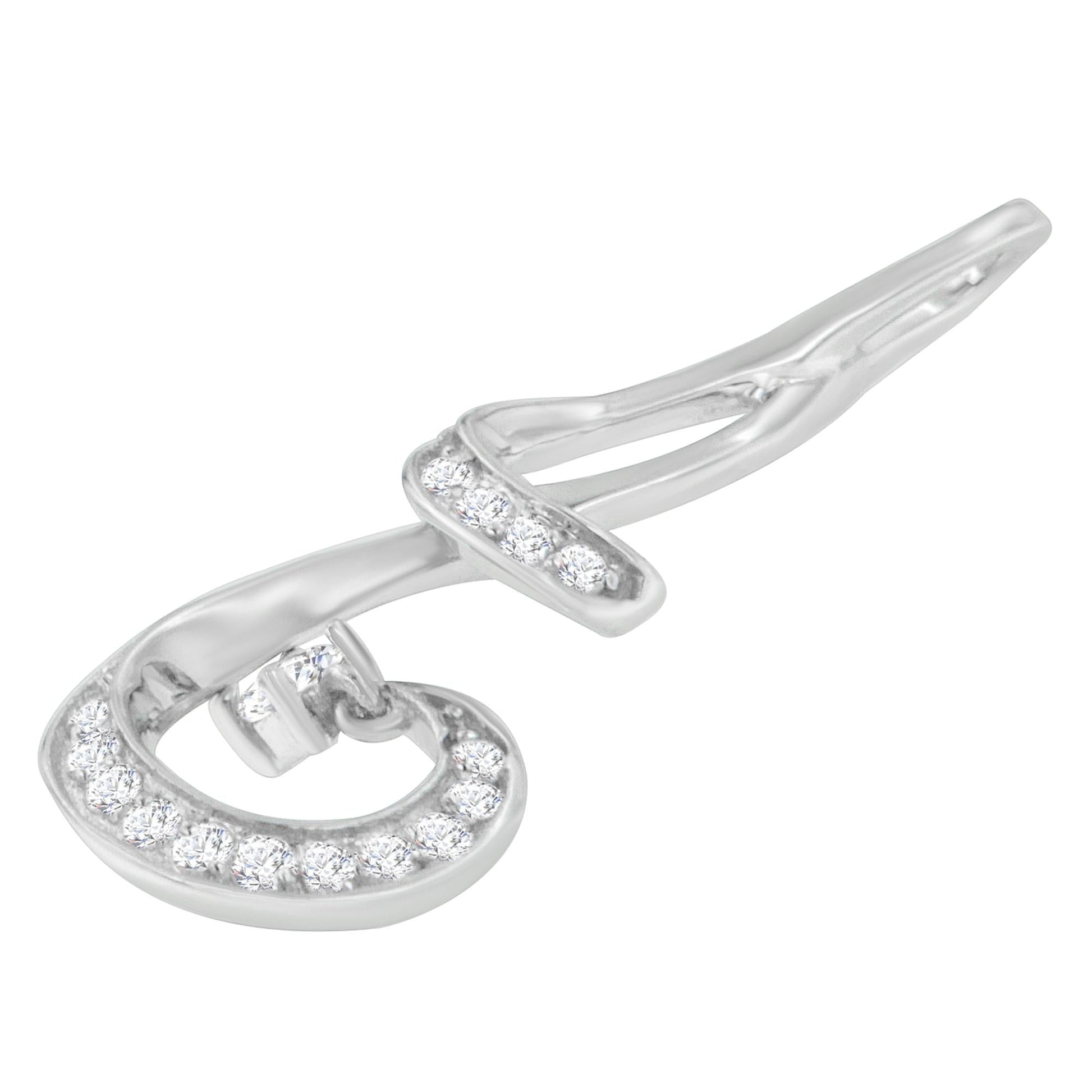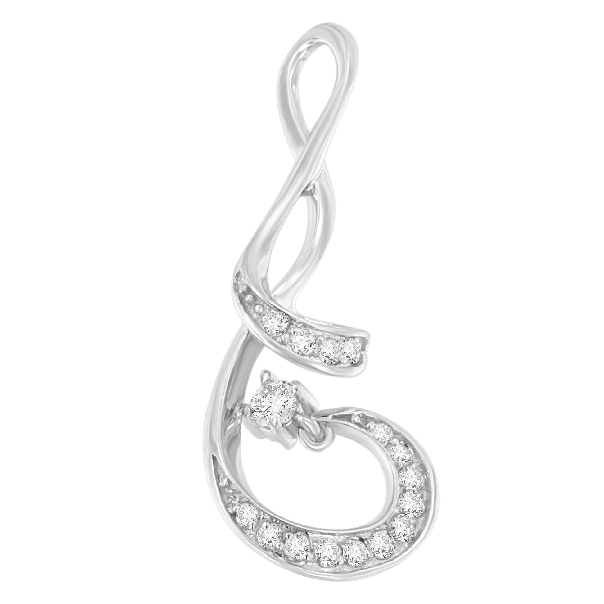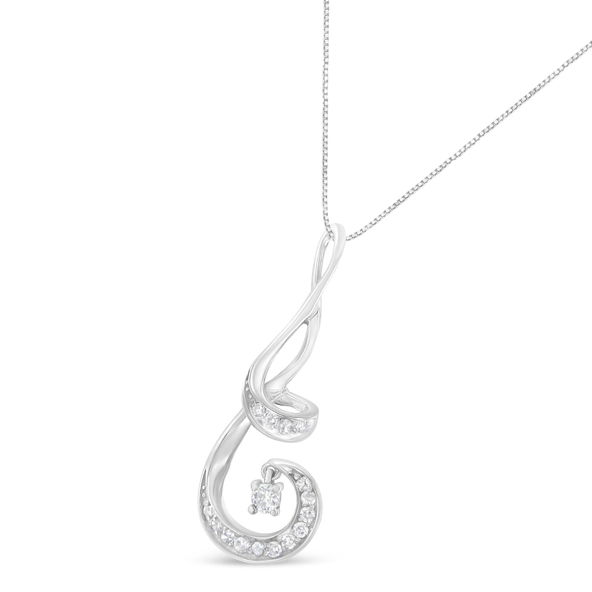 Cascading down in an elegant spiral, this exquisite pendant is lined with glittering diamonds set along its curve, ending in a single, stunning solitaire diamond. Crafted in high-shine real 10kt white gold, it's a unique style sure to make her stand out. Wear this understated, yet elegant necklace as a signature everyday piece, or choose it to dress up any evening attire.