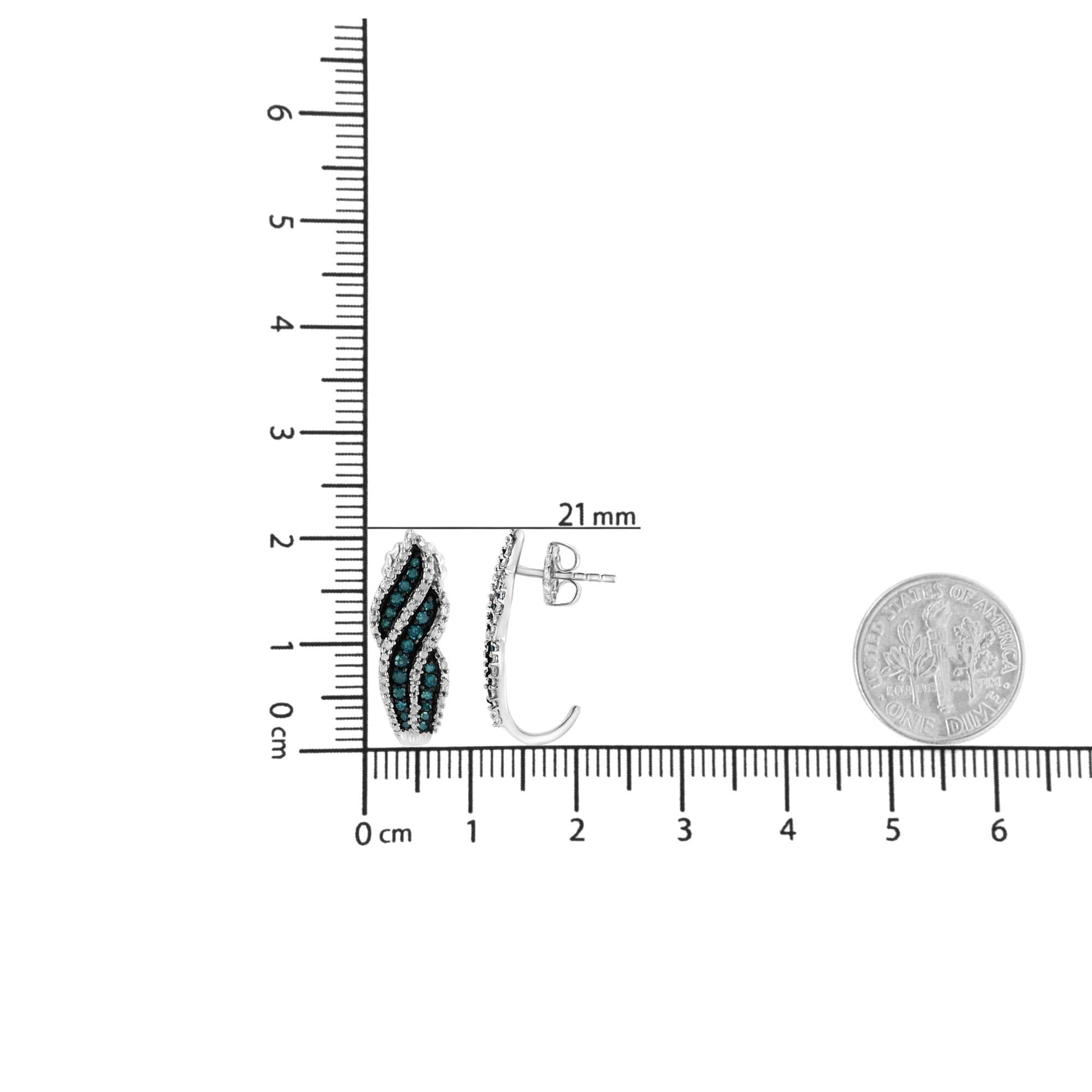 Sterling Silver .5 ct. TDW Treated Blue Diamond Dangling Stud Earrings (Blue, I1-I2)