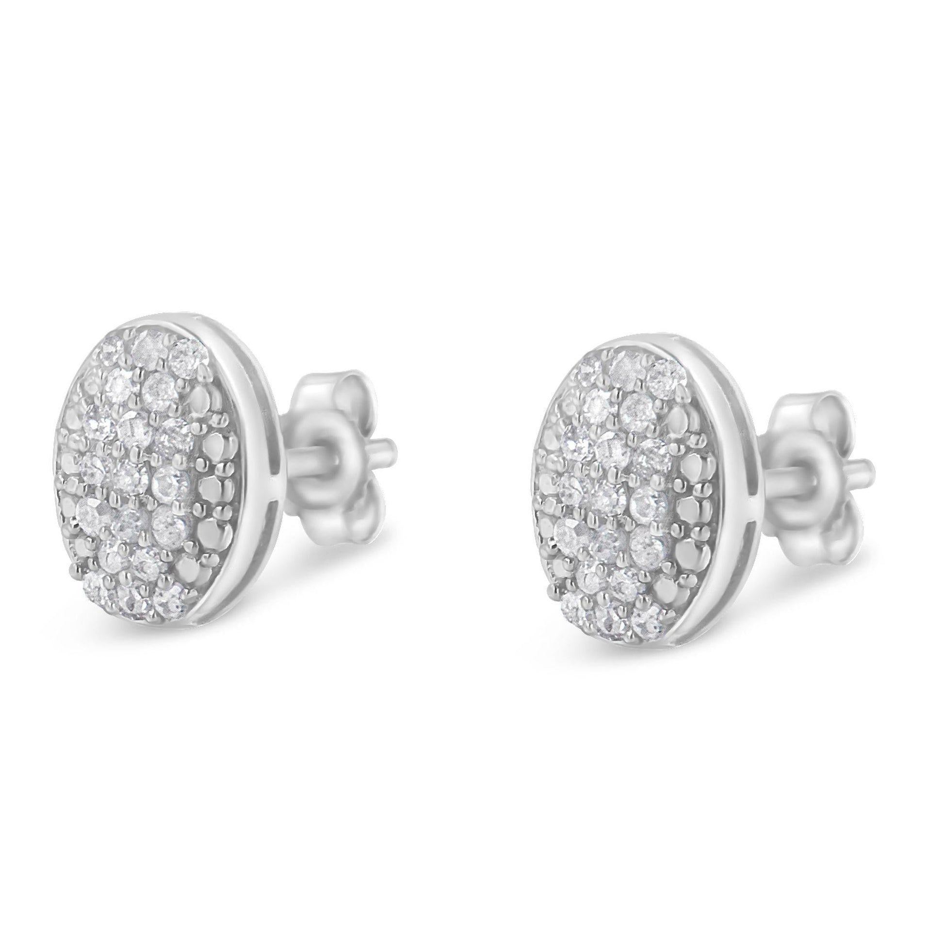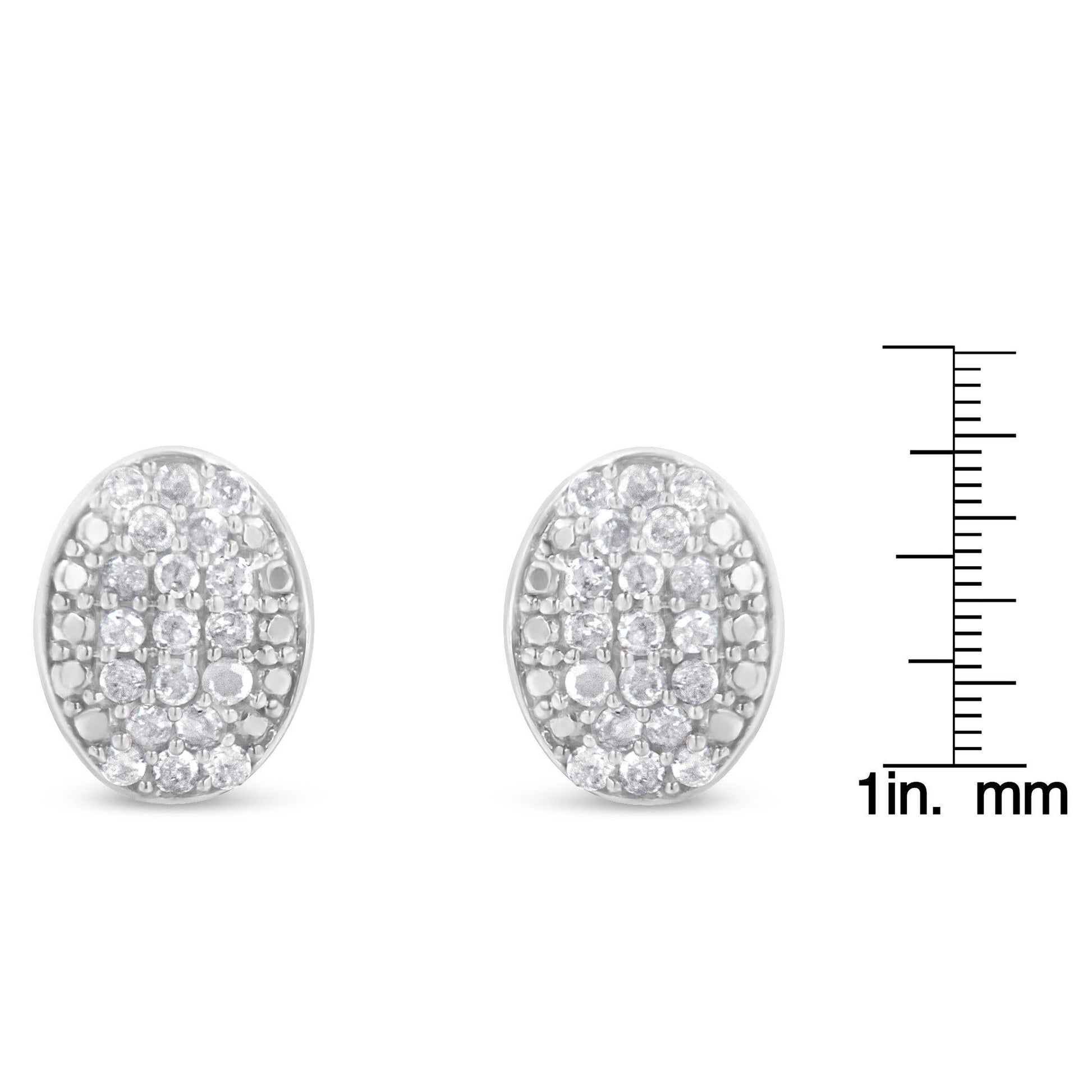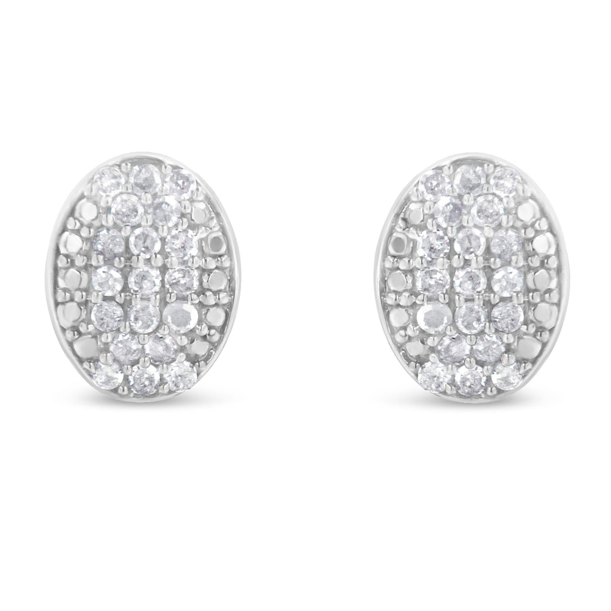 Every lady needs a set of diamond earrings in her closet. This pair of sterling silver and diamond studs earrings fit the bill perfectly. 19 rose cut, promo quality diamonds are set into each oval shaped cluster for an all-around sparkle.