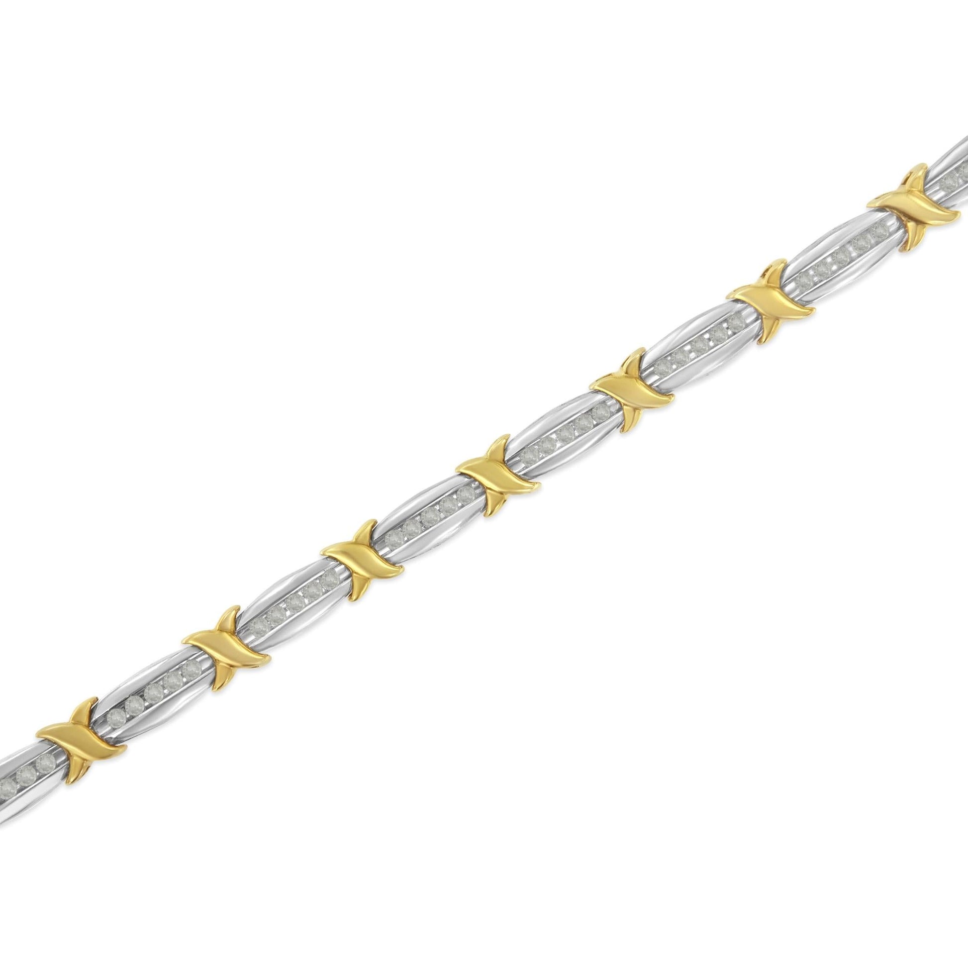 Two-Tone 10K Yellow Gold over .925 Sterling Silver 1.0 Cttw Diamond Channel Set Tapered & X-Link 7" Tennis Bracelet (H-I Color, I2-I3 Clarity)