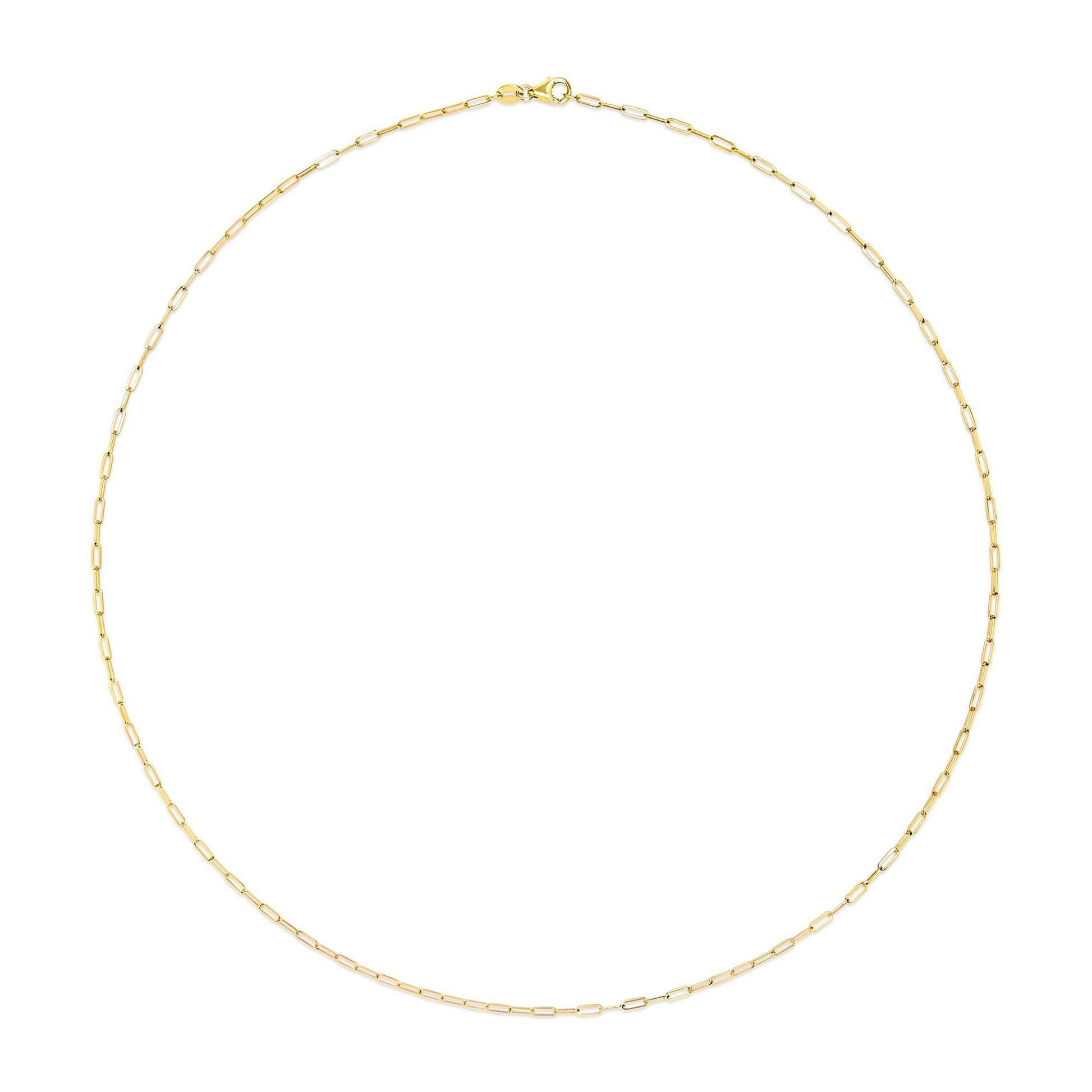 Introducing a captivating masterpiece, this Unisex Solid 14K Yellow Gold Paperclip Chain Necklace is a testament to elegance and versatility. Crafted with precision from genuine 14K yellow gold, its slender 1.5mm width effortlessly enhances any attire. With a length of 18 inches, it gracefully rests upon your collarbone, exuding a subtle yet impactful charm. Its unique paperclip design symbolizes connectivity and individuality, making it a striking choice for both men and women. Fasten it securely with the lobster claw clasp, ensuring a seamless blend of style and convenience. Elevate your jewelry collection with this exquisite 14K Gold Paperclip Chain, a timeless treasure that transcends trends and celebrates your impeccable taste.