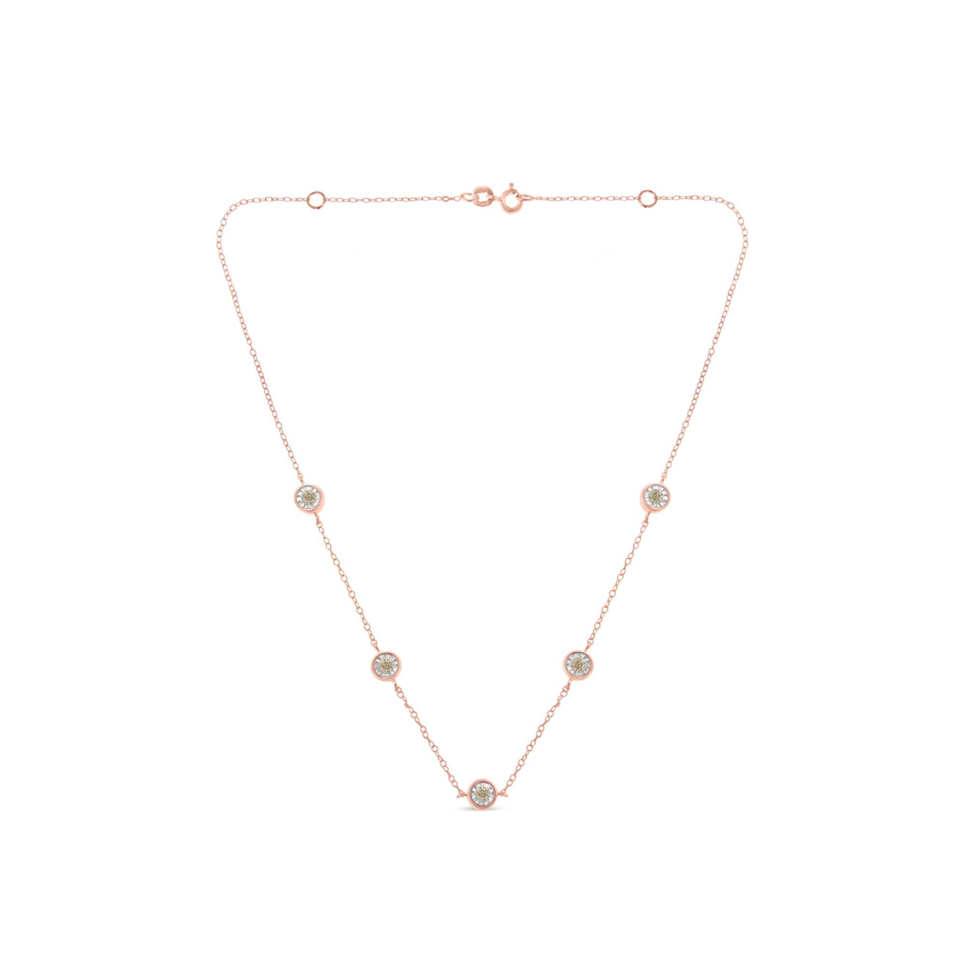 This station necklace features five diamonds miracle set along a sterling silver yellow and white colored chain. This delicate and intricate design has a total diamond weight of .5 carats.The necklace measures a 18 inches around.